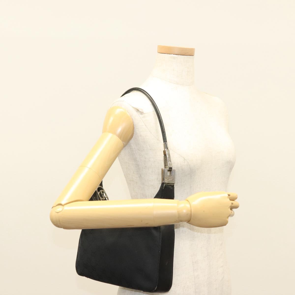 GUCCI GG Canvas Shoulder Bag Black Silver 001 3312 Auth sw1145