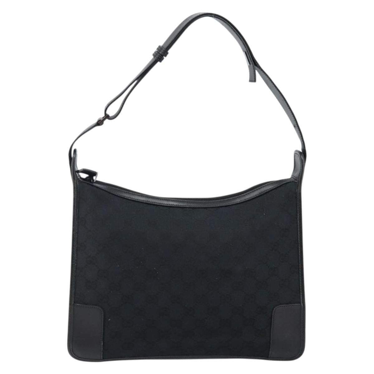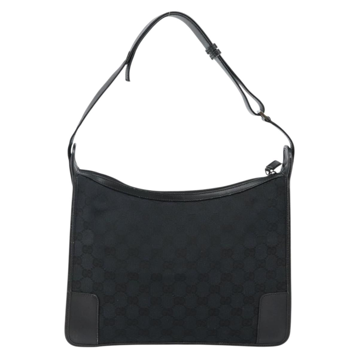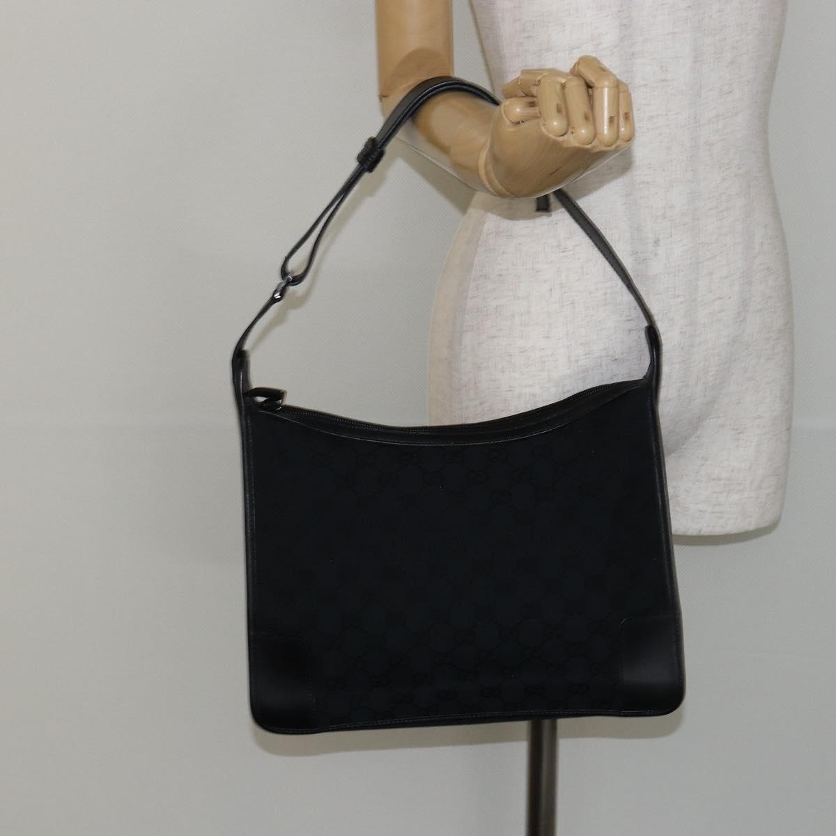 GUCCI GG Canvas Shoulder Bag Black Silver 001 4205 Auth 143772