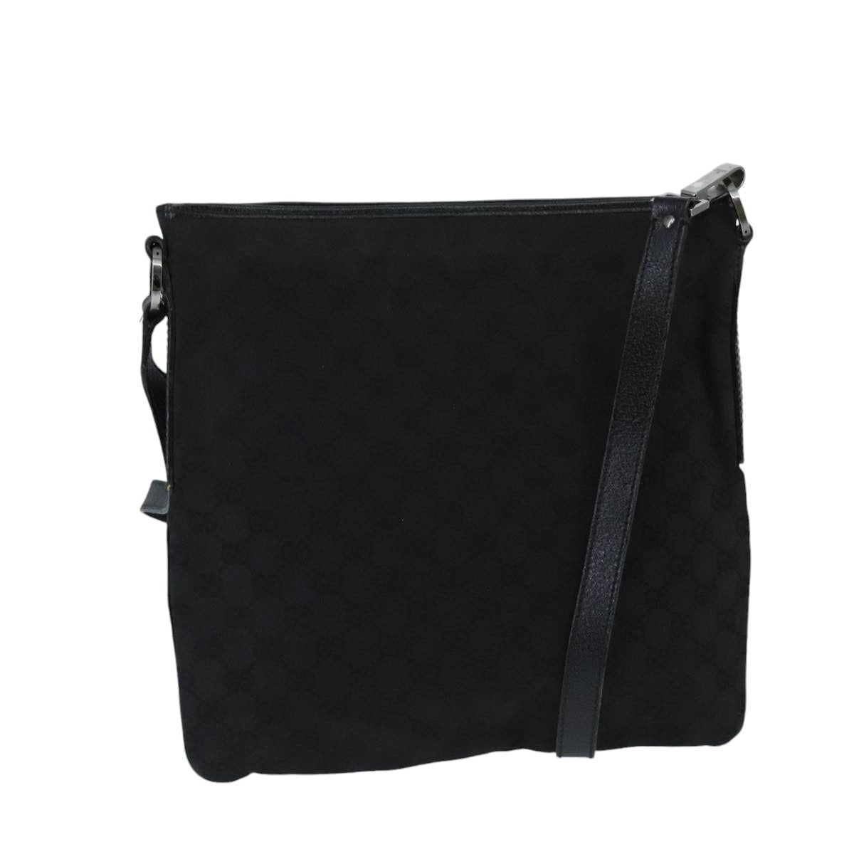 GUCCI GG Canvas Shoulder Bag Black Silver 113013 Auth bs20185