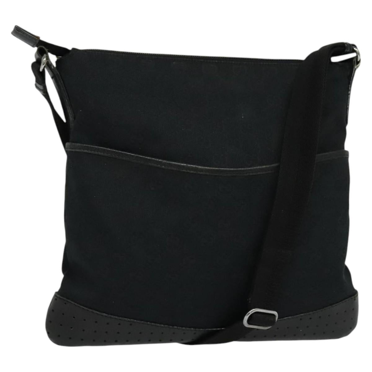 GUCCI GG Canvas Shoulder Bag Black Silver 145857 001013 Auth bs24306