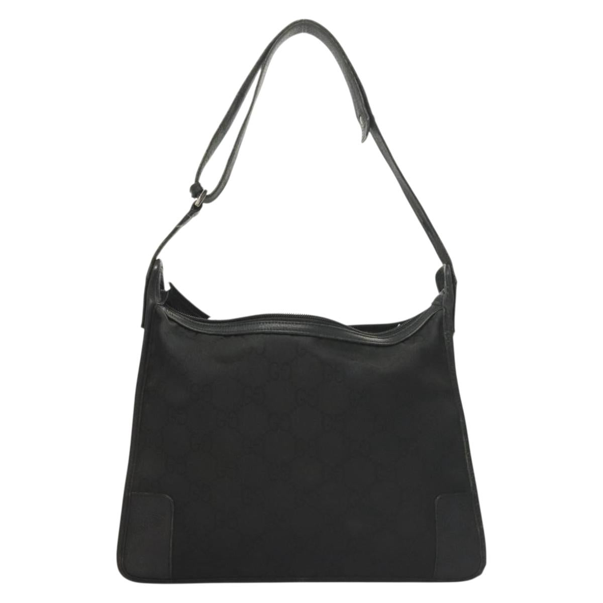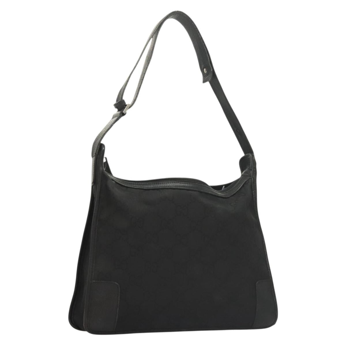 GUCCI GG Canvas Shoulder Bag Black Silver Auth ep9783