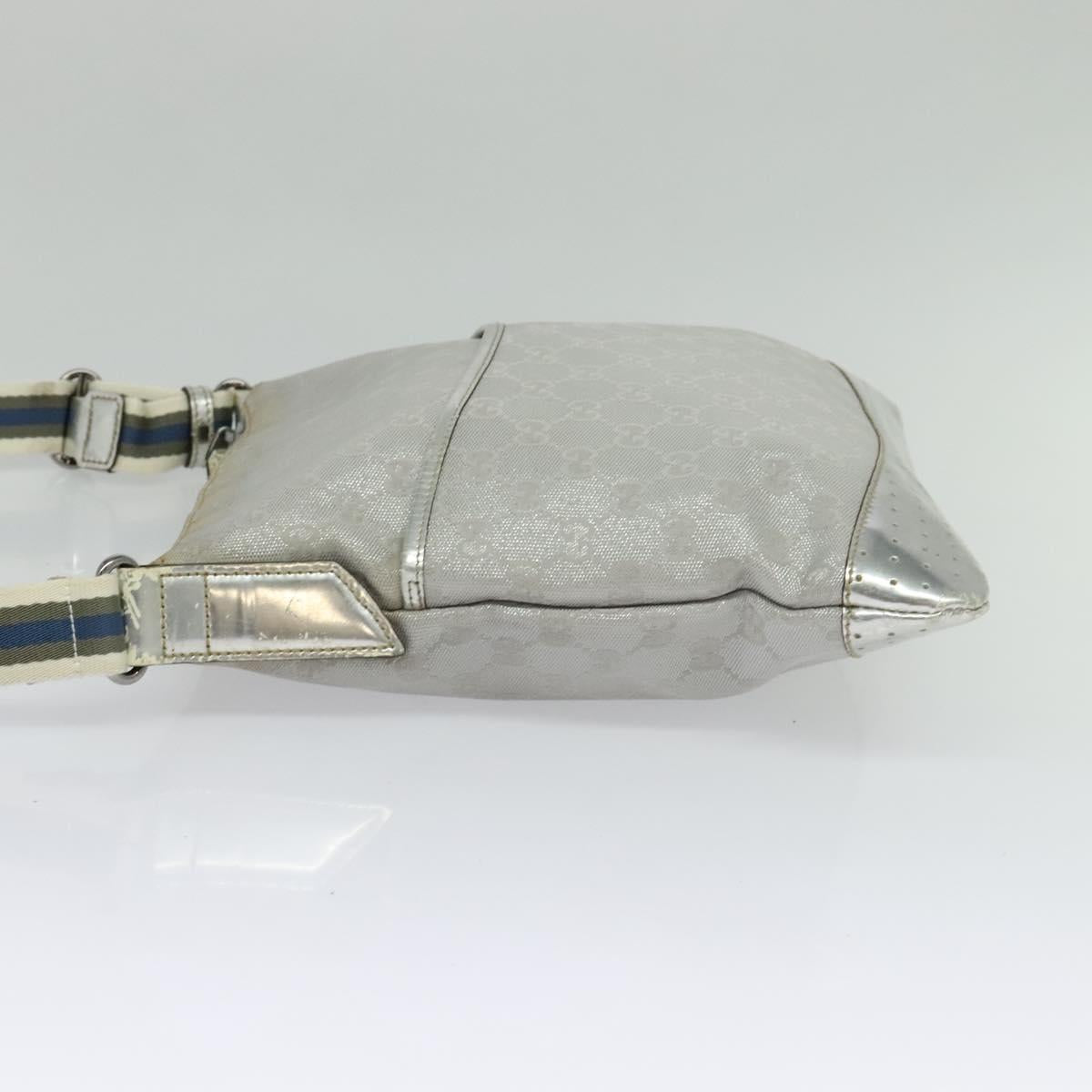 GUCCI GG Canvas Shoulder Bag Silver 145857 Auth 134088