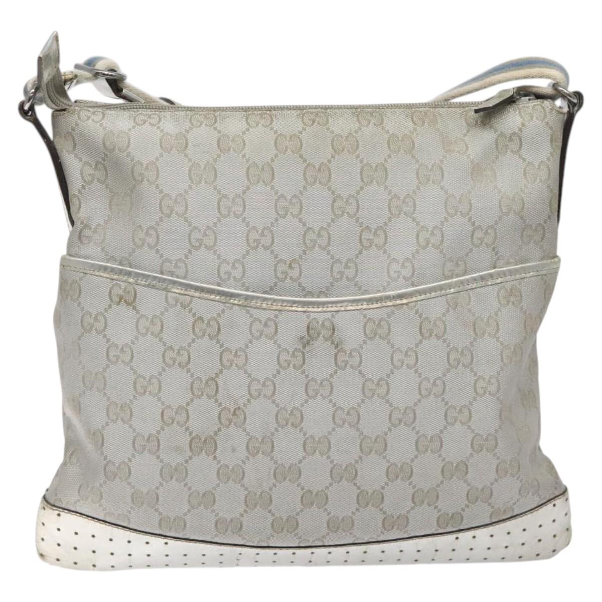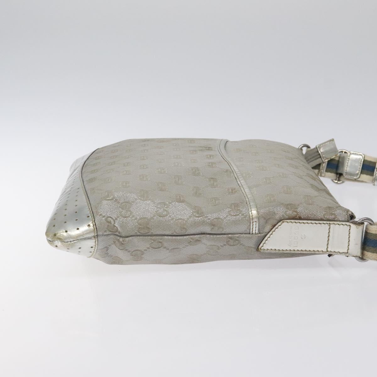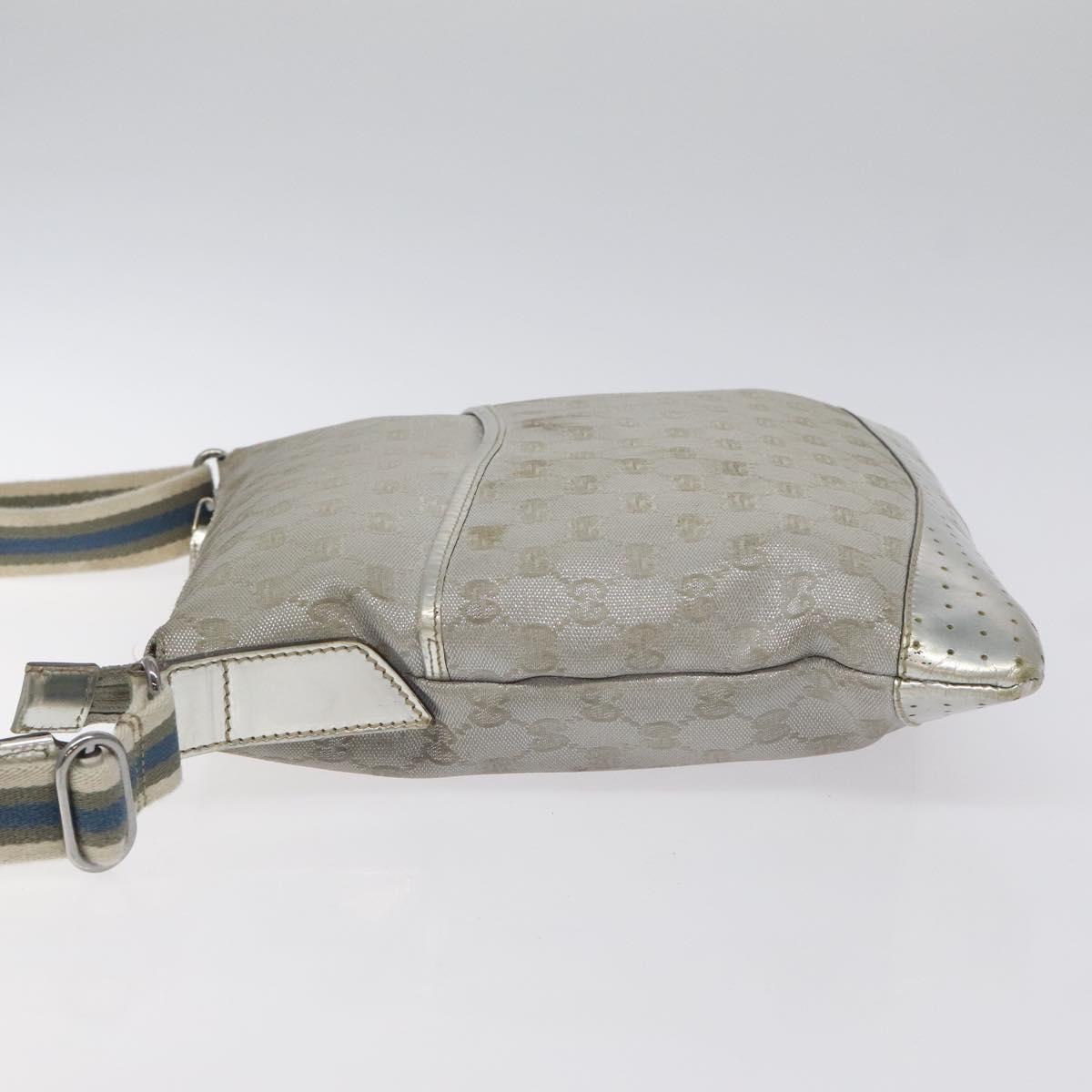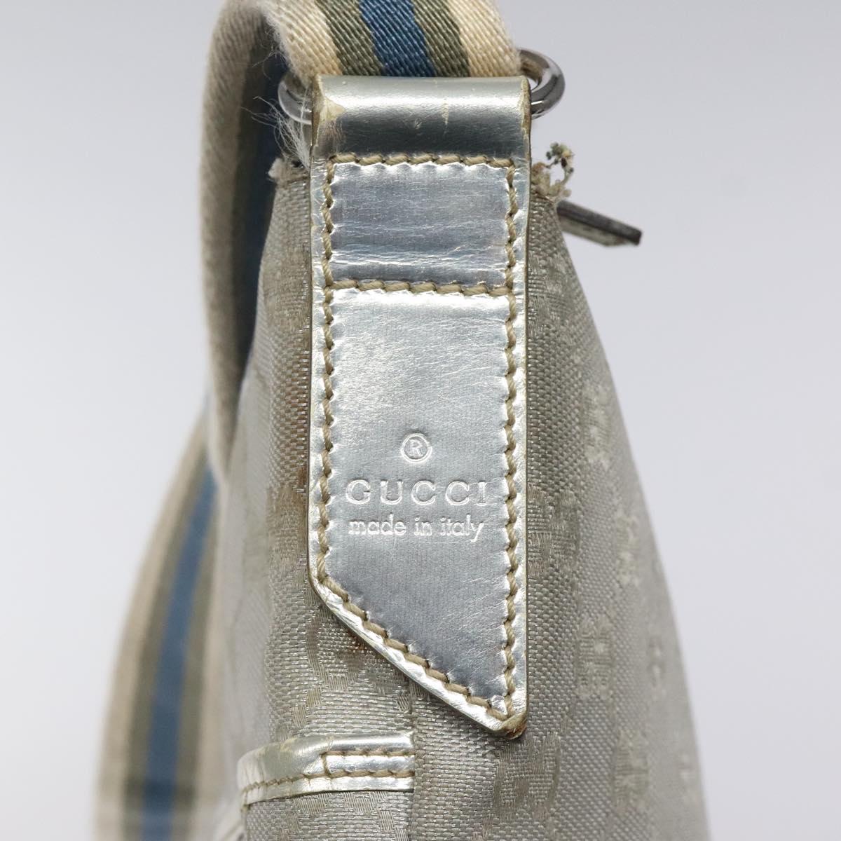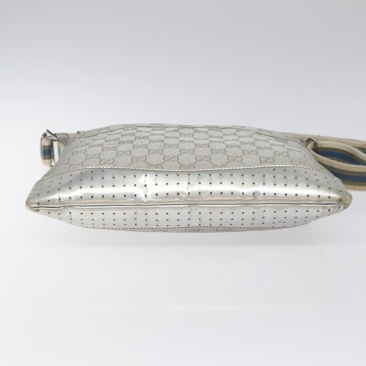 GUCCI GG Canvas Shoulder Bag Silver 145857 Auth ki5740