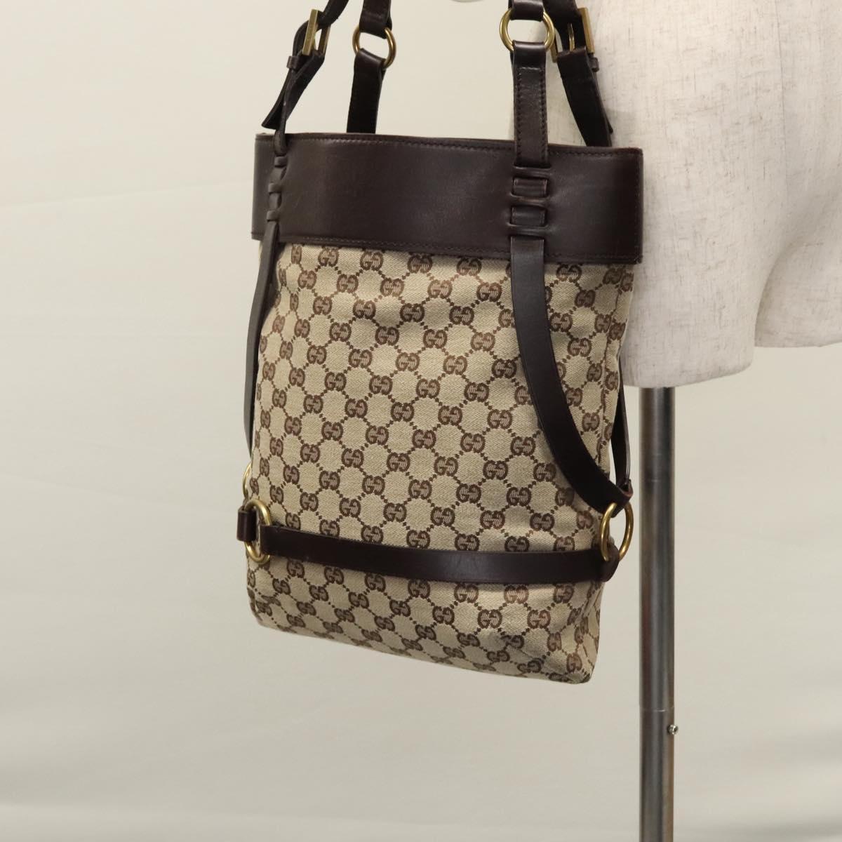 GUCCI GG Canvas Tote Bag Beige Brown gold 106248 Auth nb240