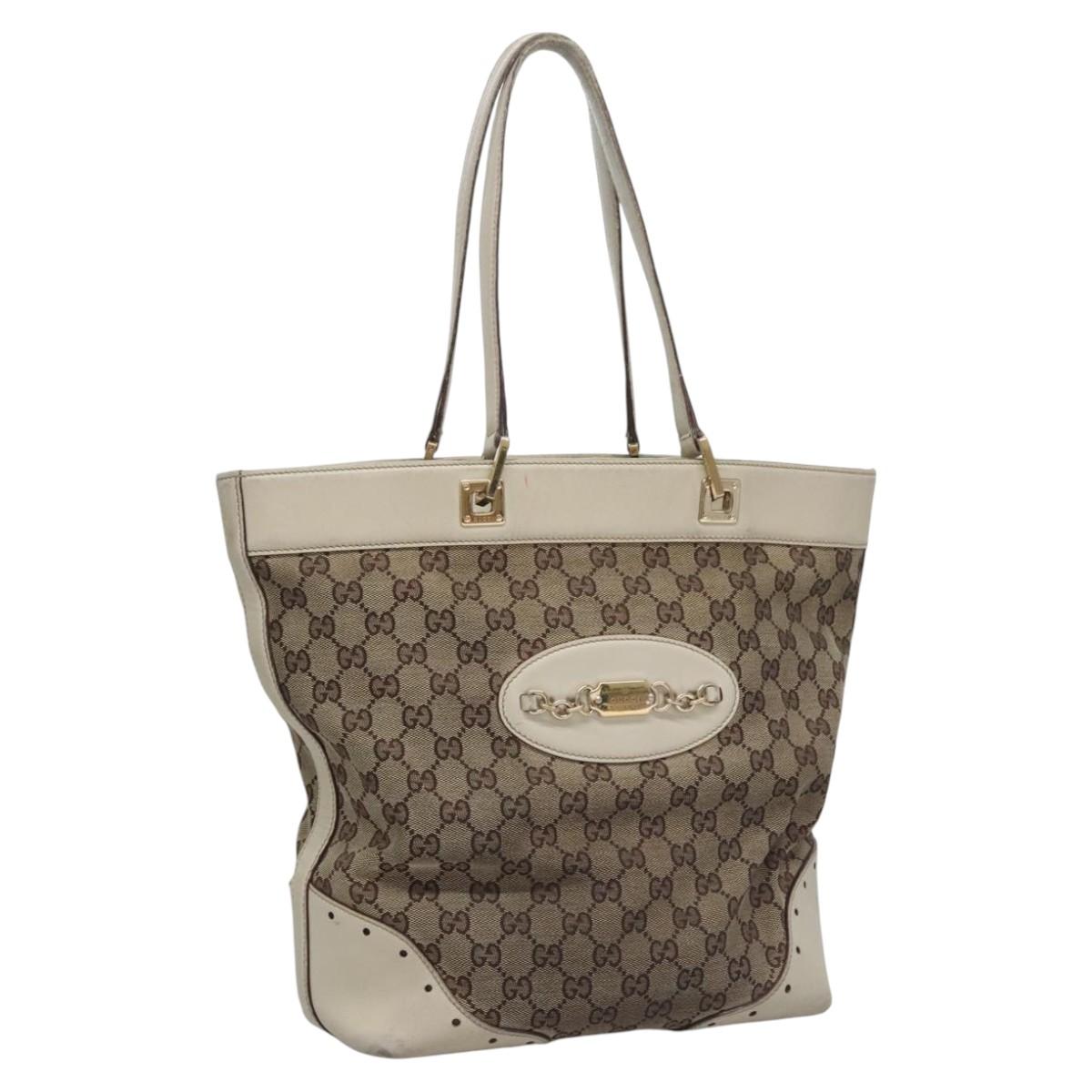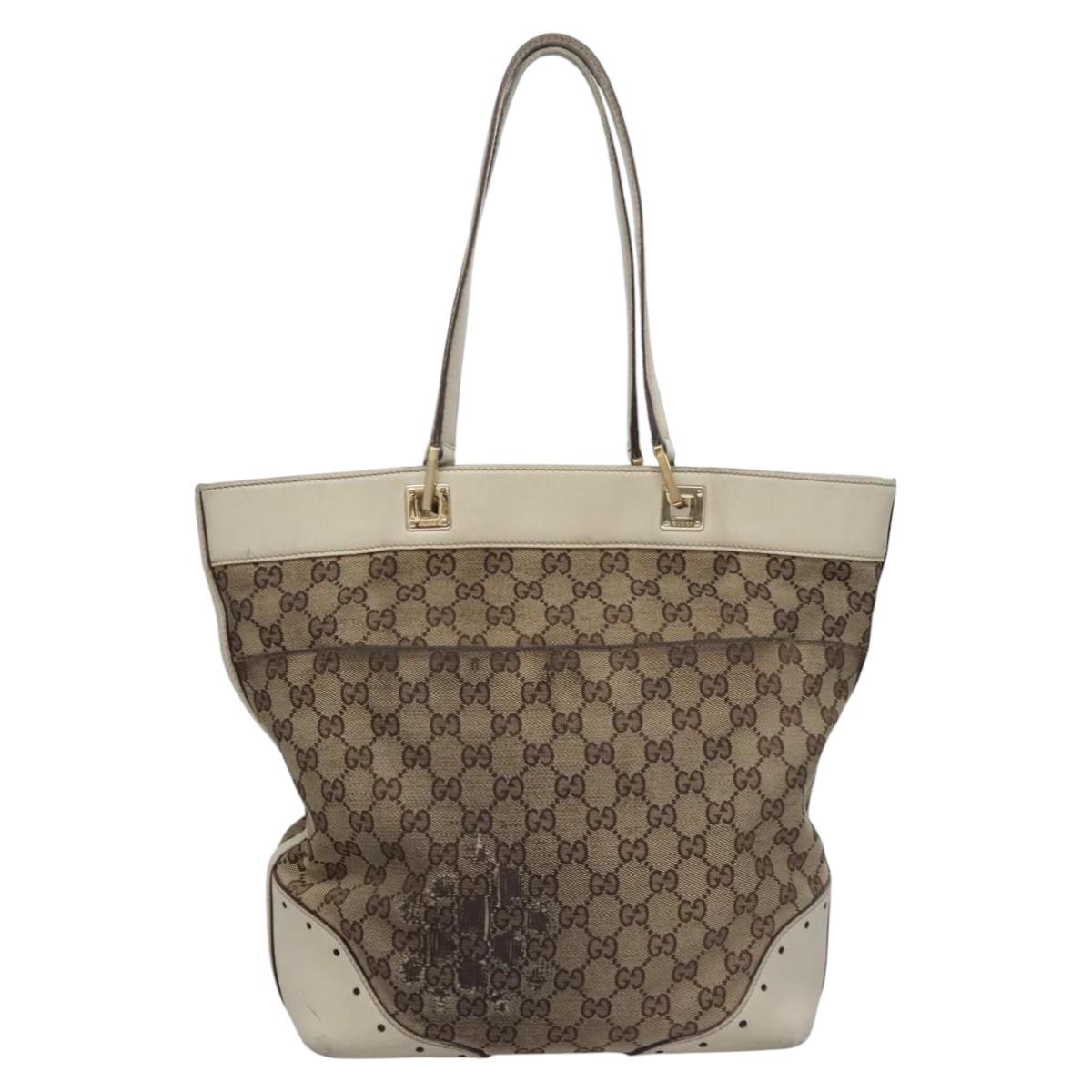 GUCCI GG Canvas Tote Bag Beige Gold 145984 Auth hk2123