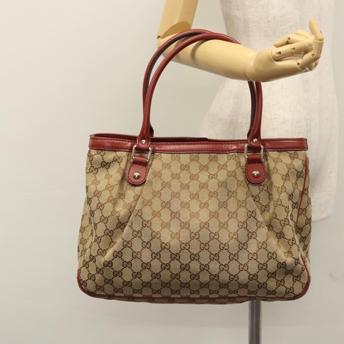 GUCCI GG Canvas Tote Bag Beige Gold Red 296835 Auth KD123