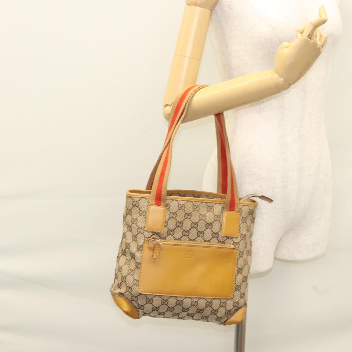 GUCCI GG Canvas Tote Bag Beige Silver 019 0402 Auth th5862