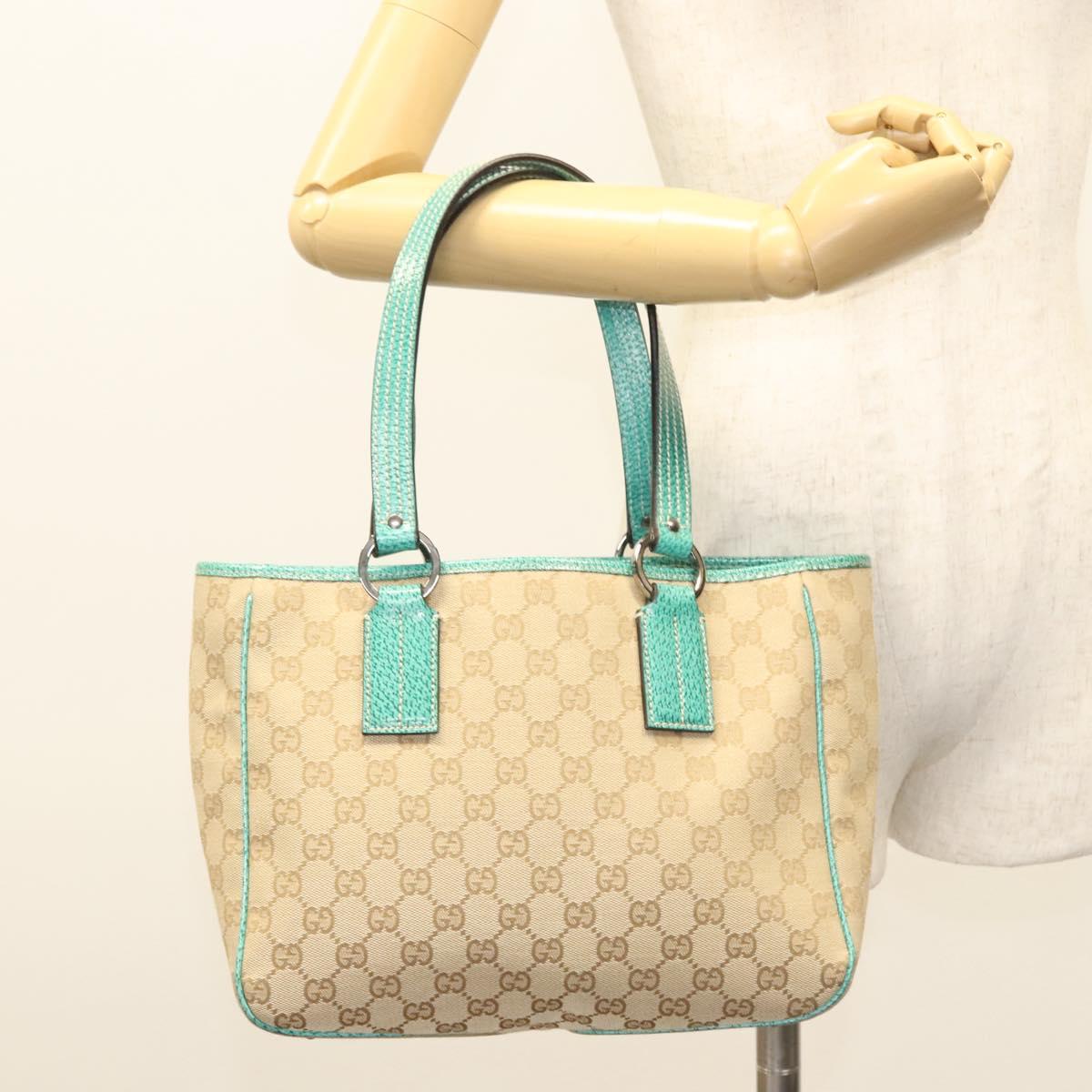 GUCCI GG Canvas Tote Bag Beige Silver 113019 Auth BA1823