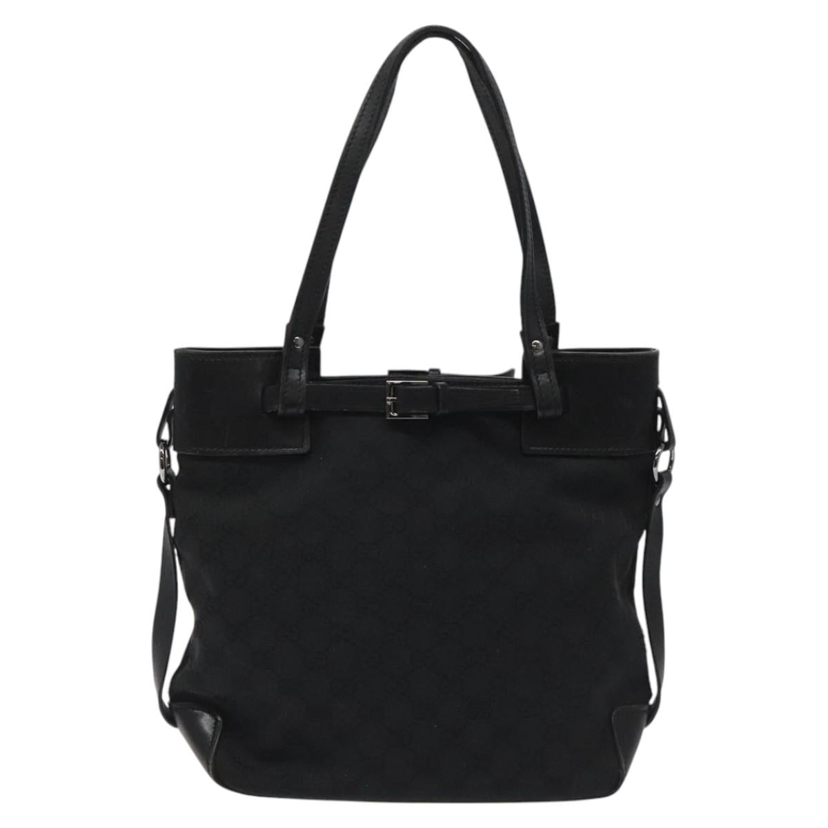 GUCCI GG Canvas Tote Bag Black Silver 107757 Auth nb044