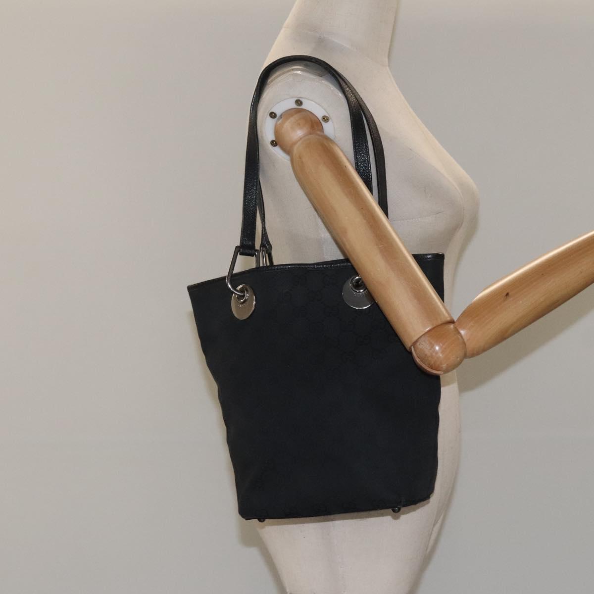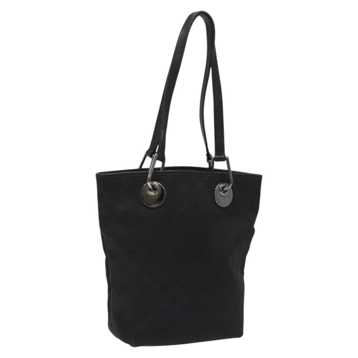 GUCCI GG Canvas Tote Bag Black Silver 120840 Auth nb060