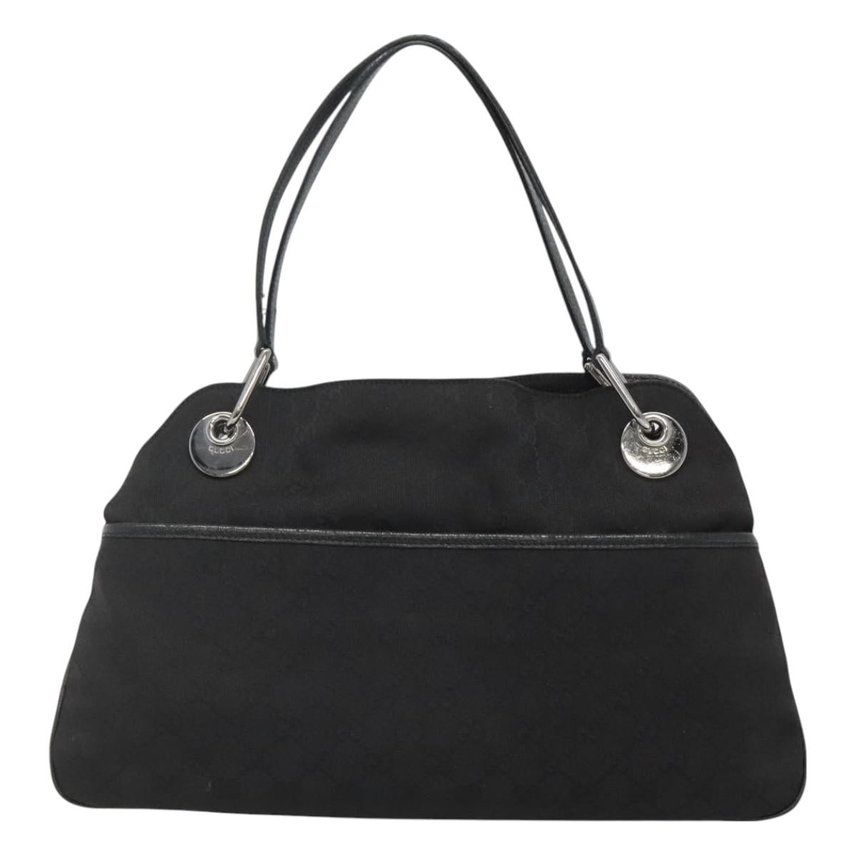 GUCCI GG Canvas Tote Bag Black Silver 121023 Auth 131188