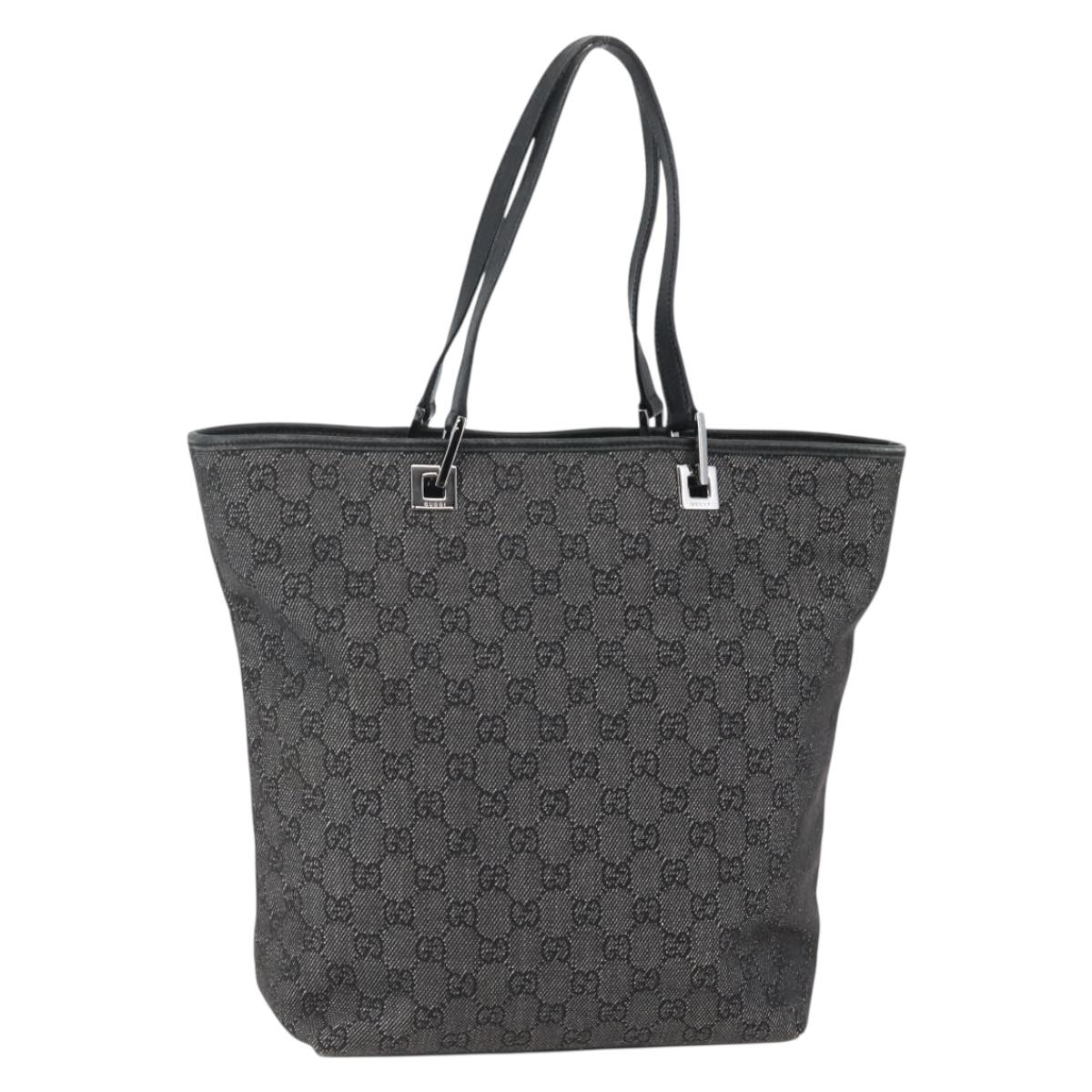 GUCCI GG Canvas Tote Bag Black Silver 31243 Auth gh911