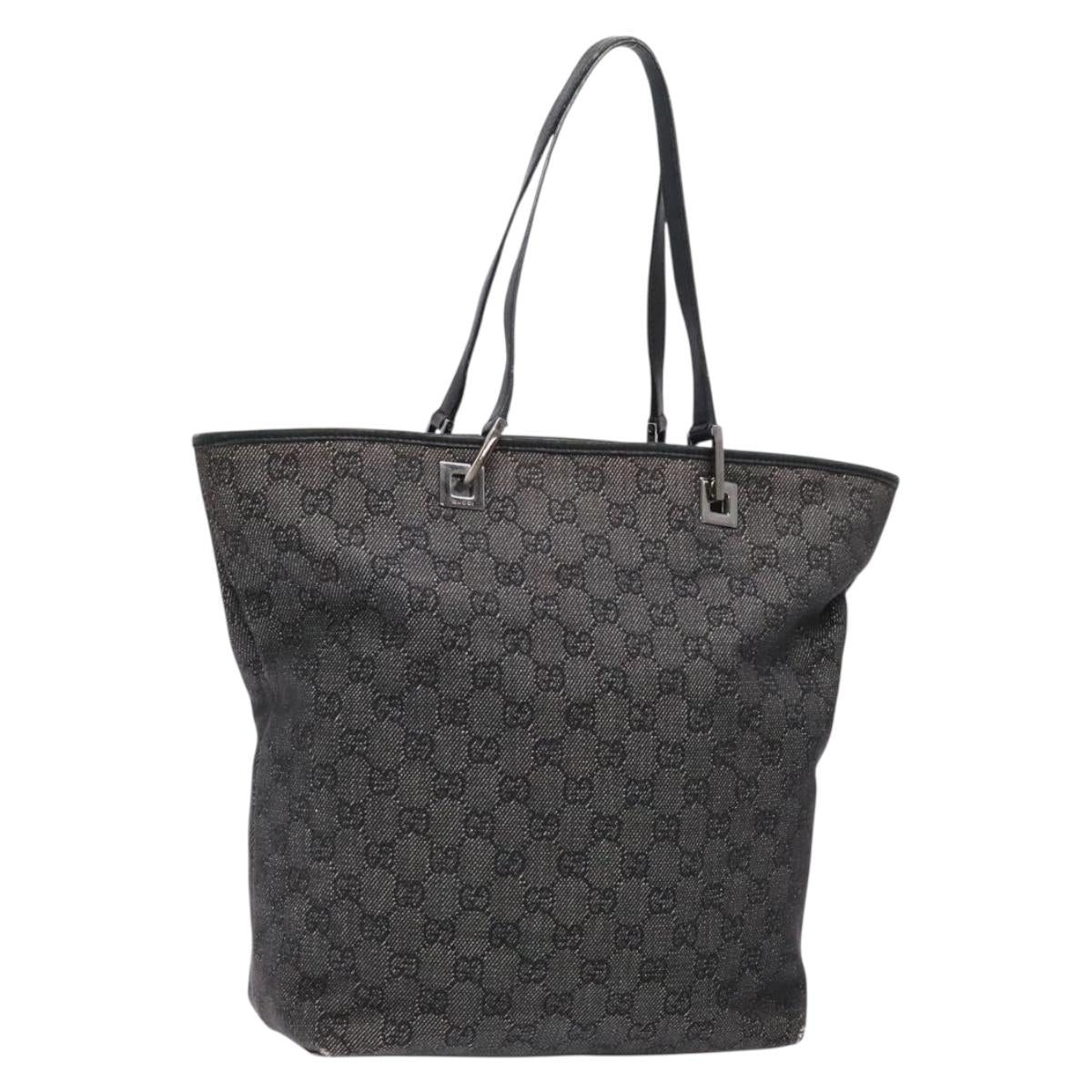 GUCCI GG Canvas Tote Bag Black Silver 31243 Auth th6279