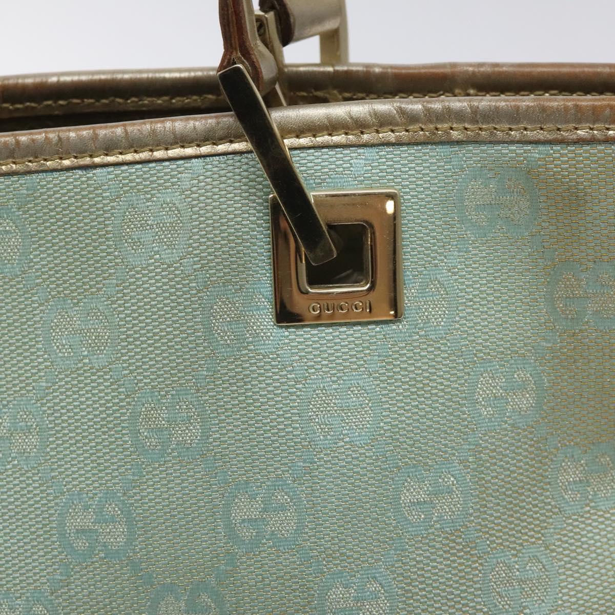 GUCCI GG Canvas Tote Bag Light Blue Gold 002 1099 Auth ti3205
