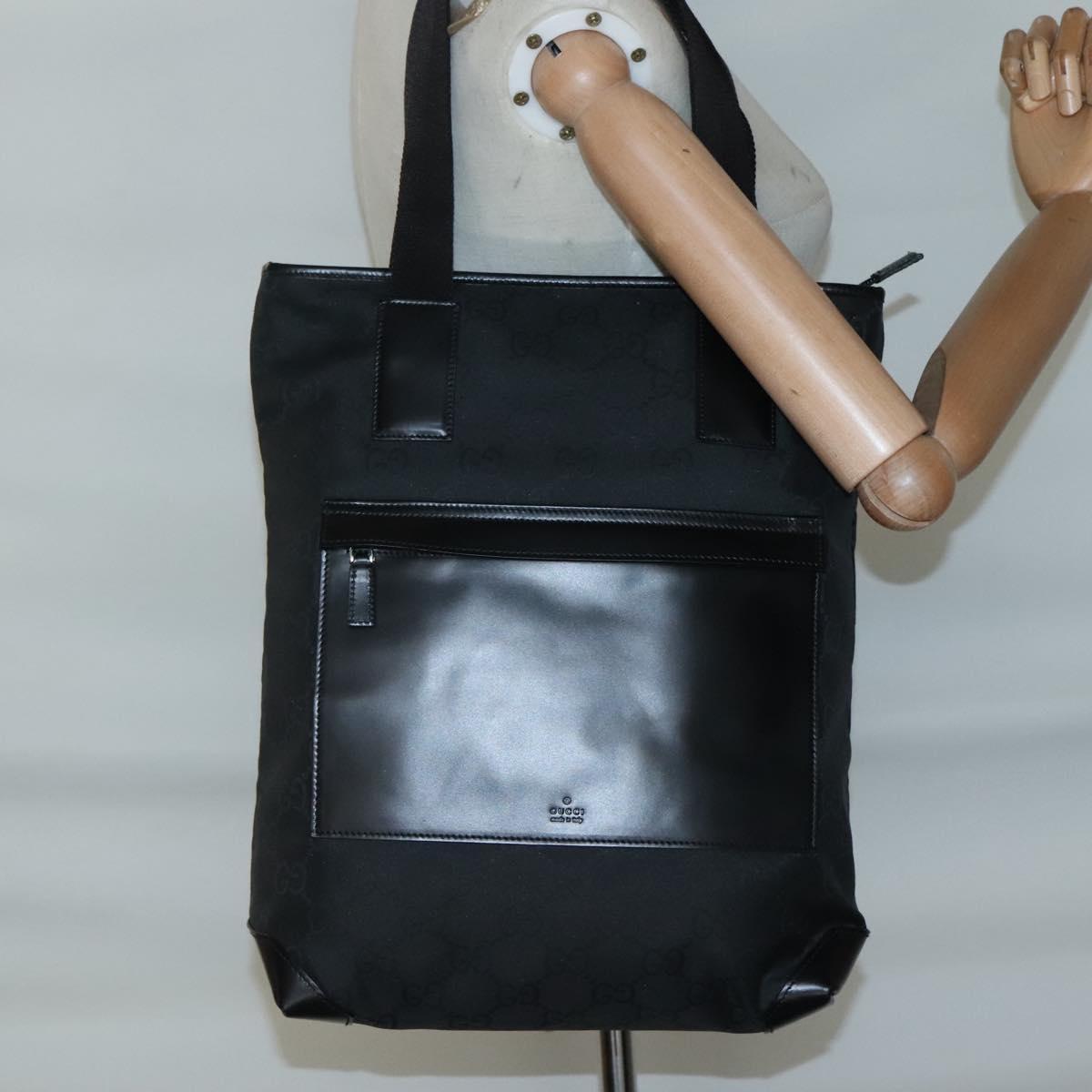 GUCCI GG Canvas Tote Bag Outlet Black Silver 180450 Auth ep10324