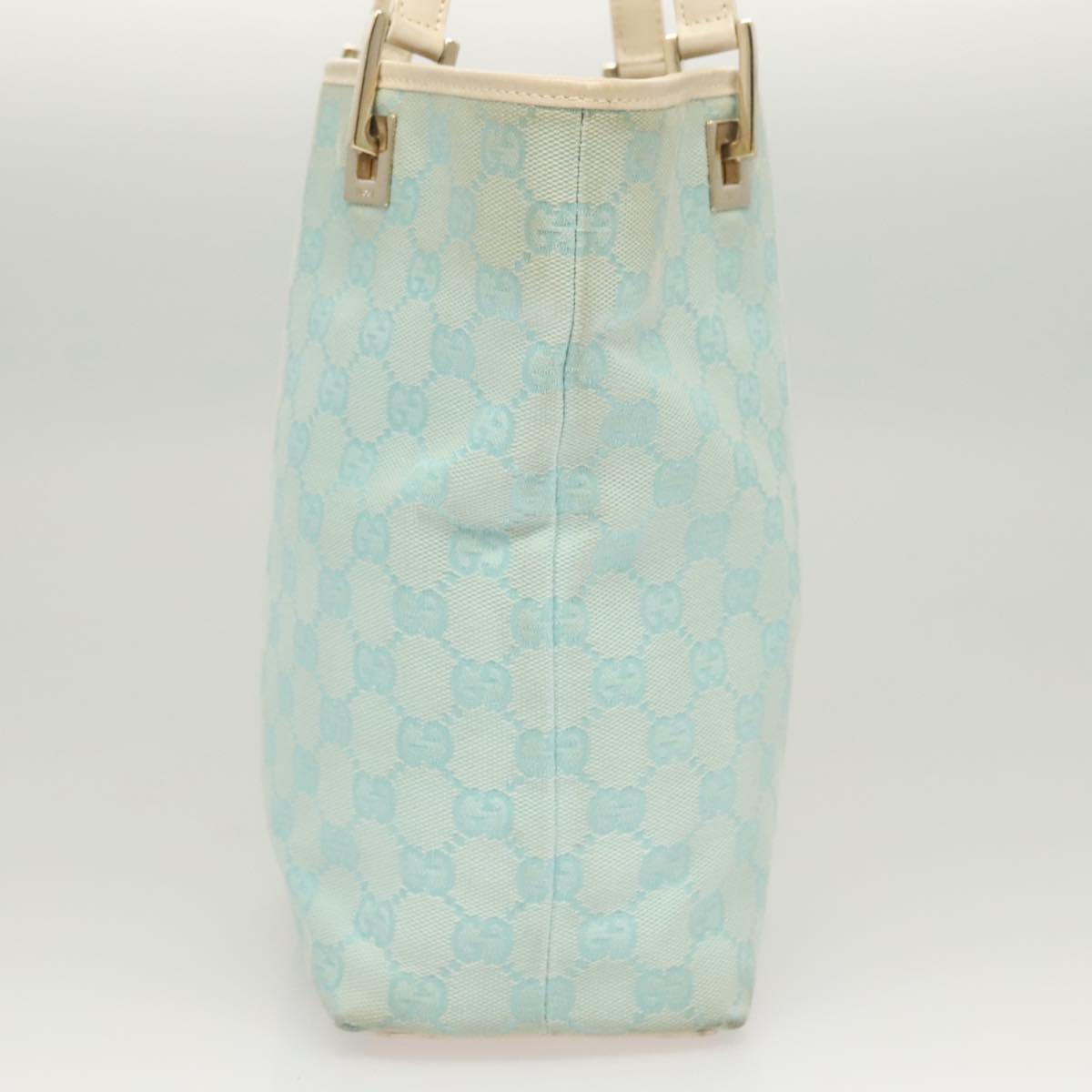 GUCCI GG Canvas Tote Bag PVC Blue Silver 002 1099 Auth 120831