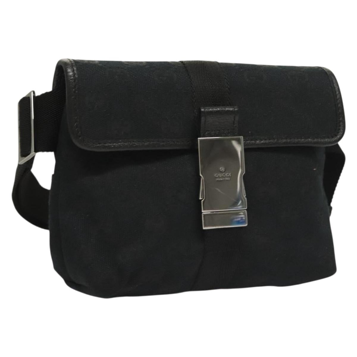 GUCCI GG Canvas Waist Bag Black Silver 131236 Auth yk18870