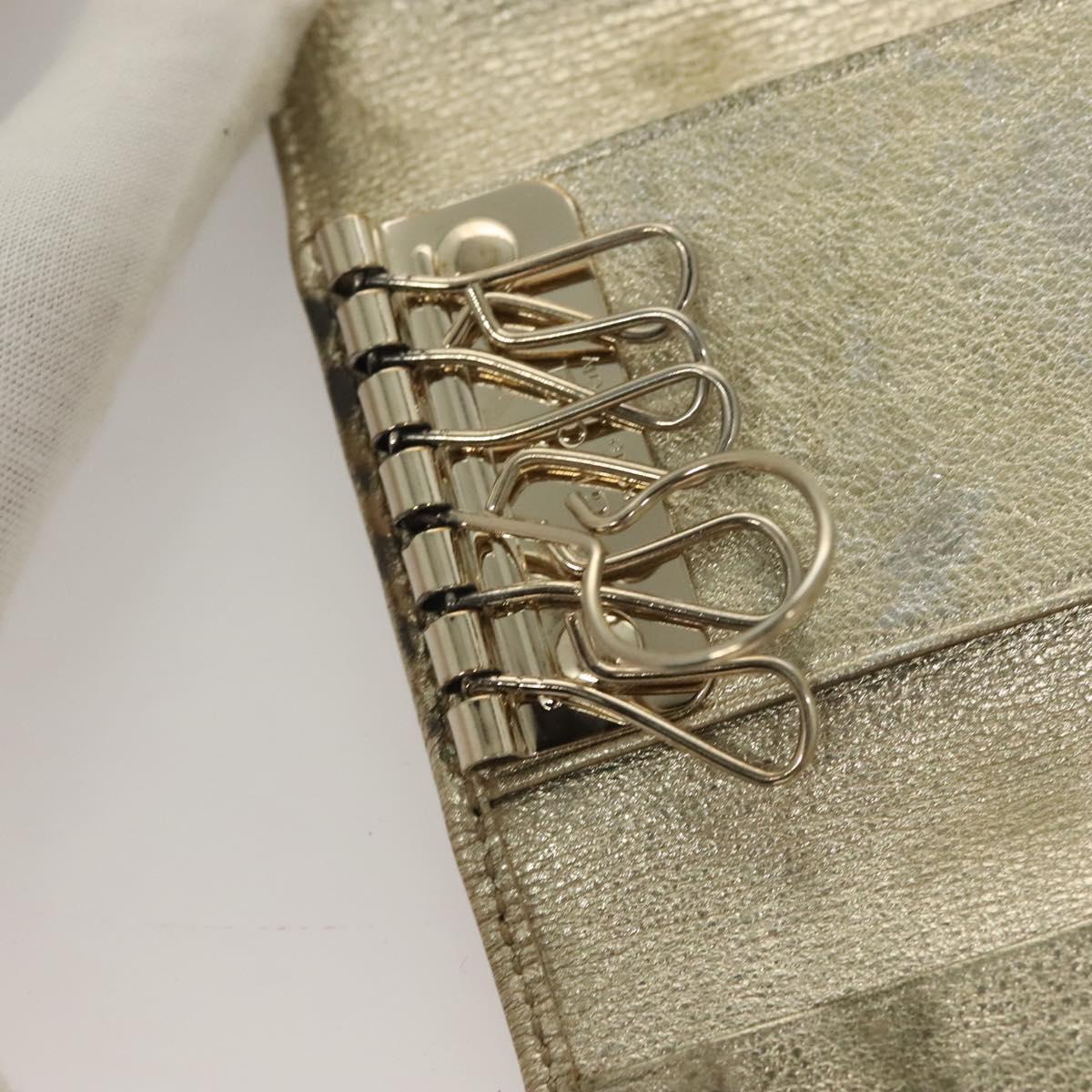 GUCCI GG Canvas Wallet Leather 4Set Black Beige gold Auth ti3271