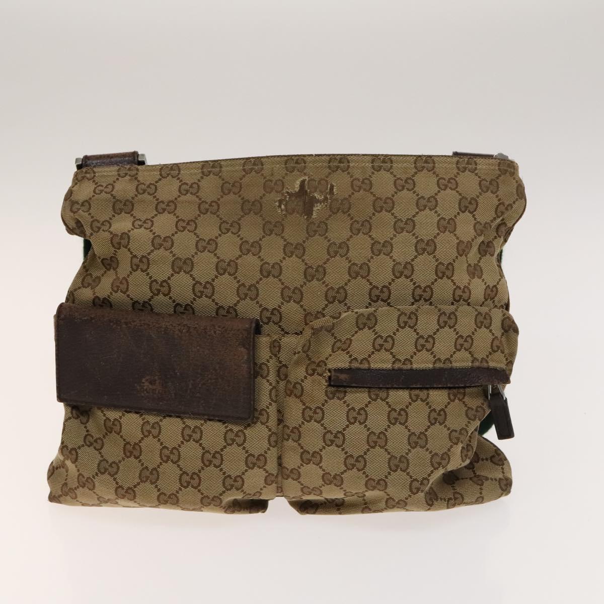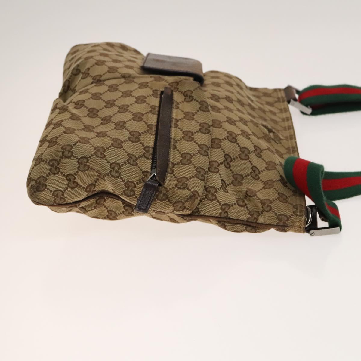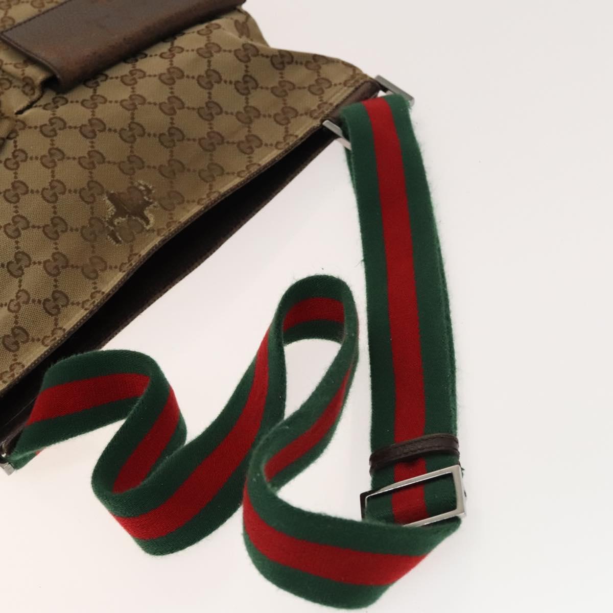 GUCCI GG Canvas Web Sherry Line Backpack Leather 3Set Beige Green Auth fm4862
