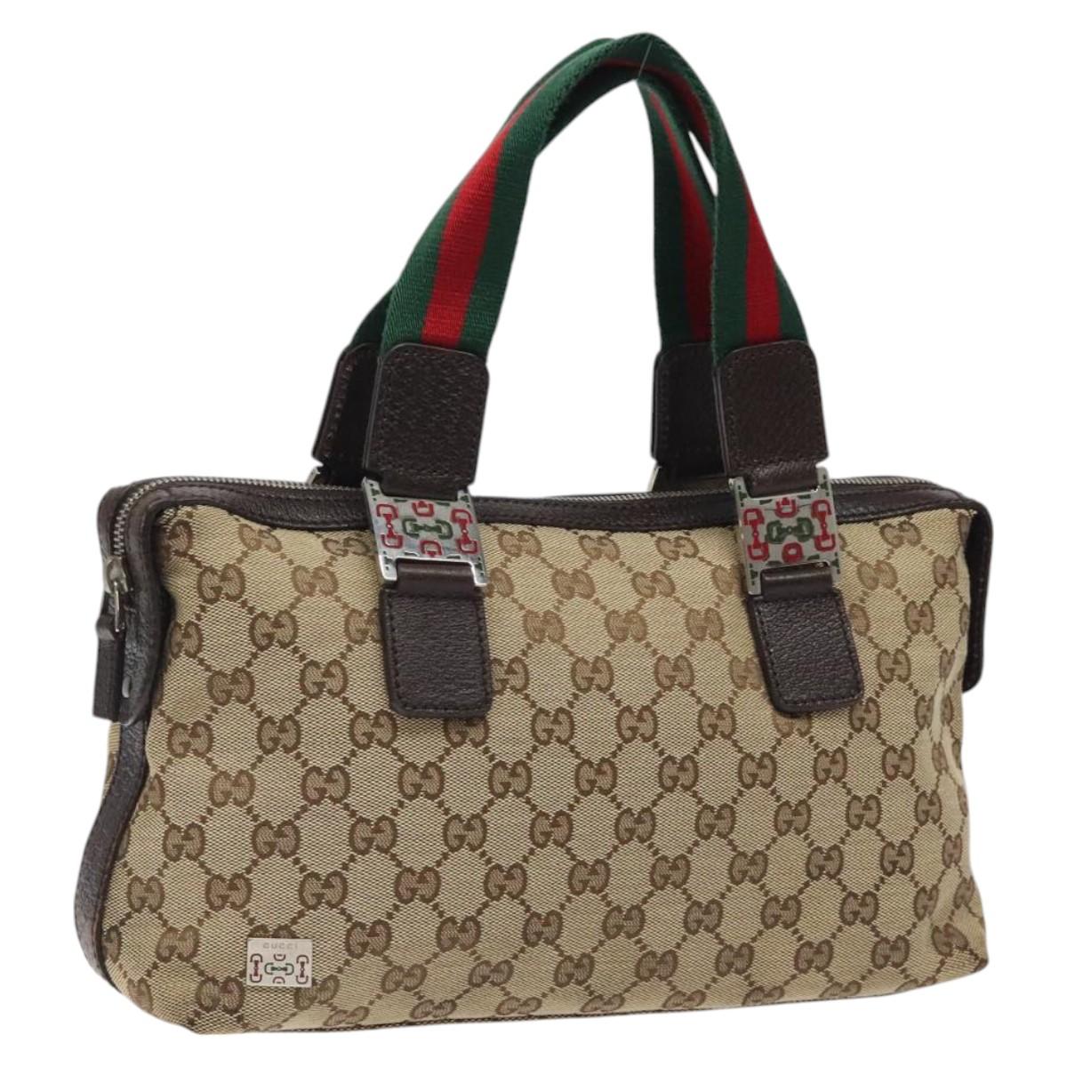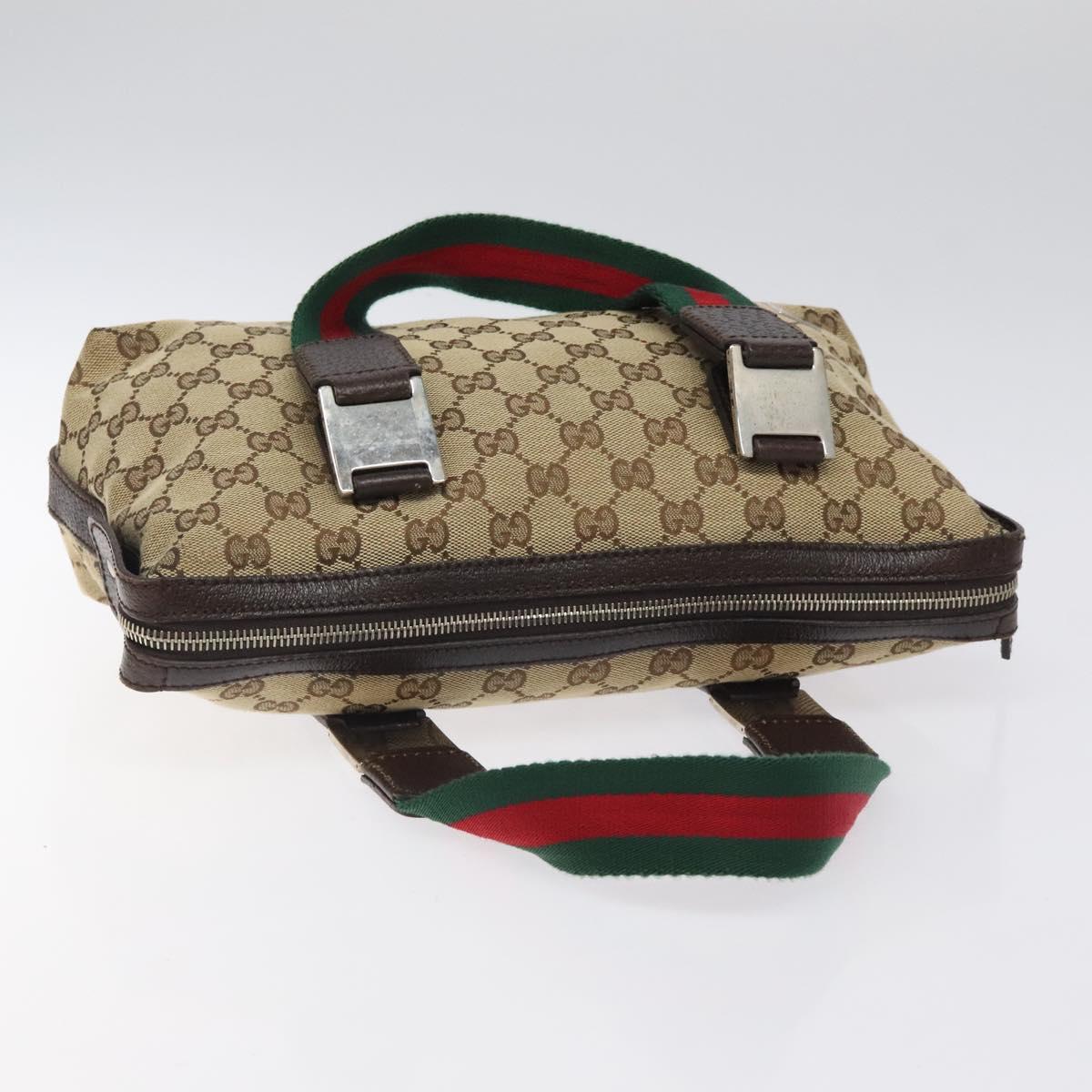 GUCCI GG Canvas Web Sherry Line Hand Bag Beige Silver 145759 Auth 119676