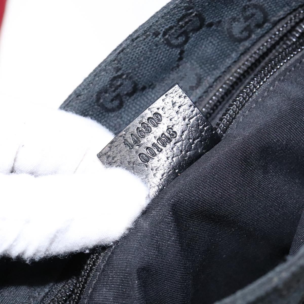 GUCCI GG Canvas Web Sherry Line Shoulder Bag Black Silver 146309 Auth 134126