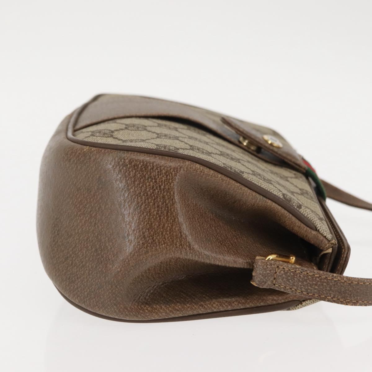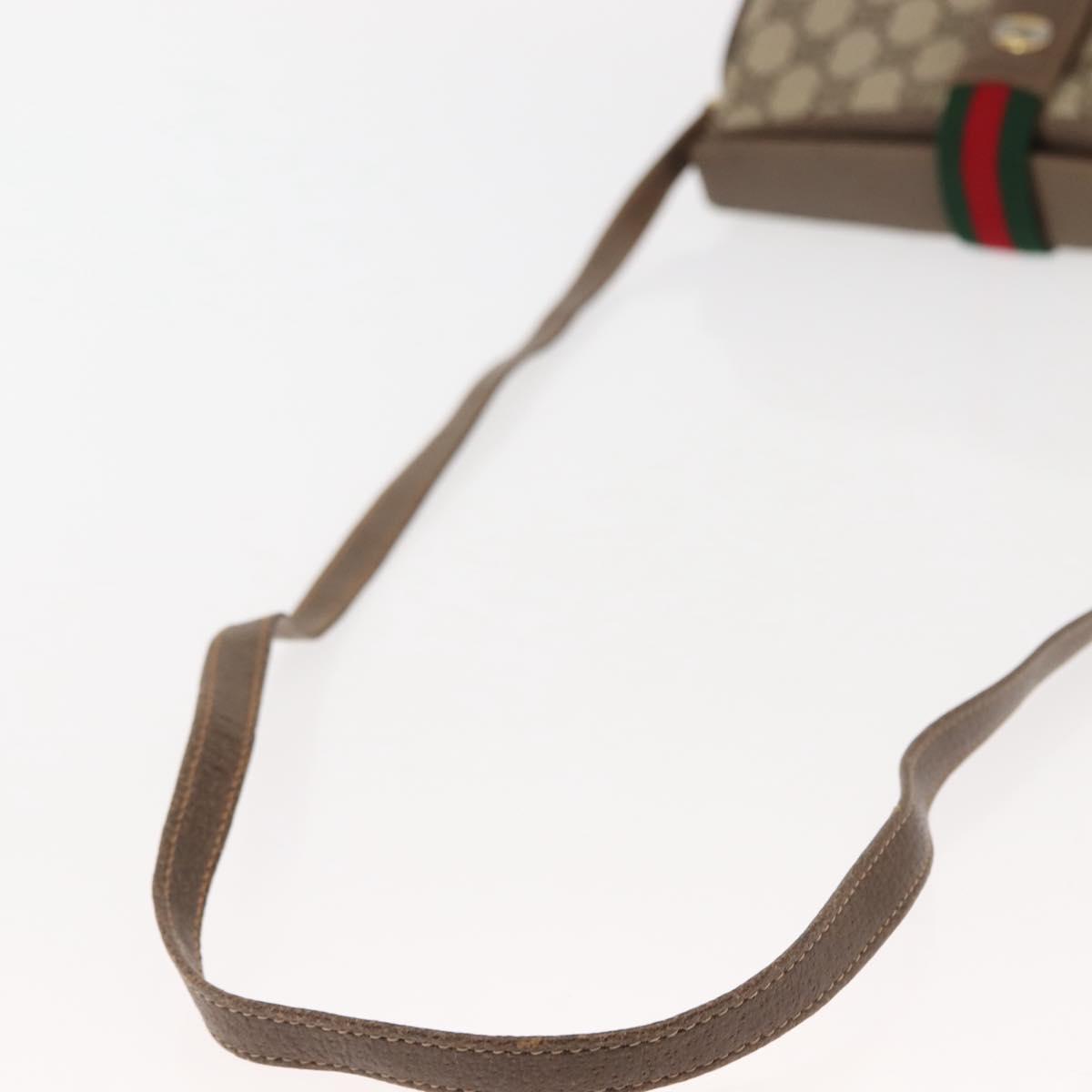GUCCI GG Canvas Web Sherry Line Shoulder Bag PVC Leather Beige Green Auth BA6763