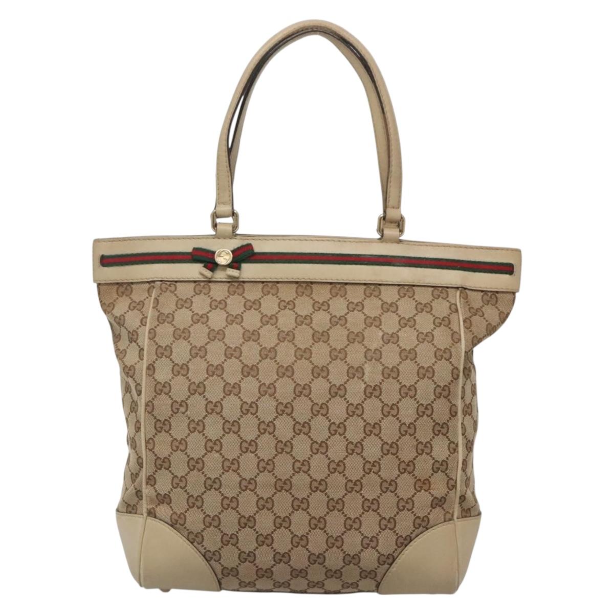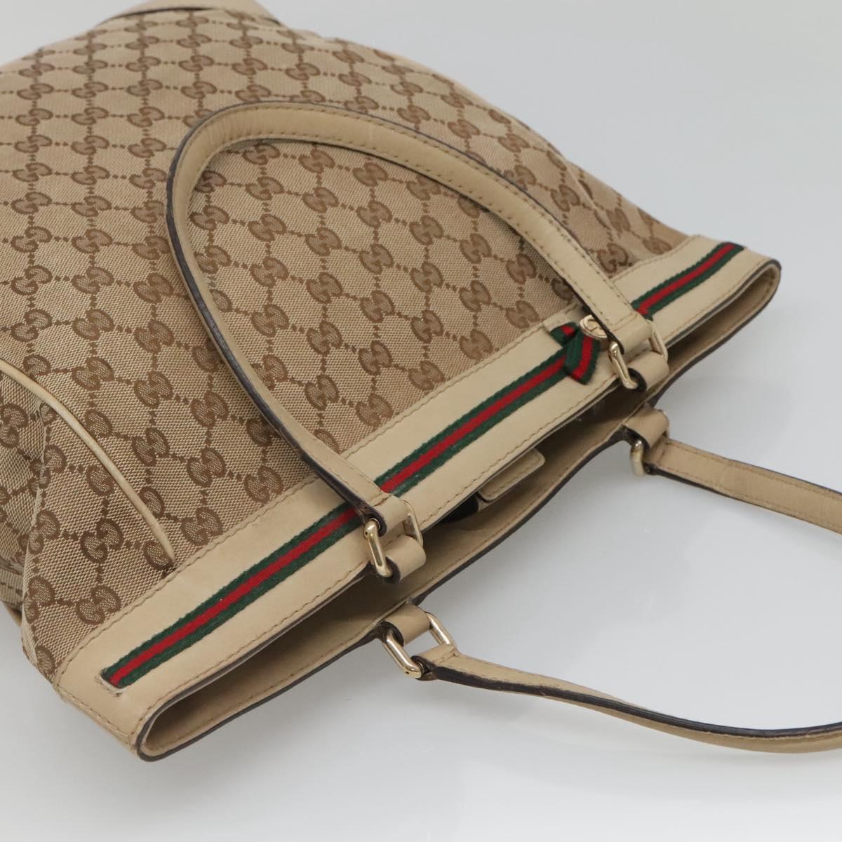 GUCCI GG Canvas Web Sherry Line Tote Bag Beige Gold 257062 Auth 140783