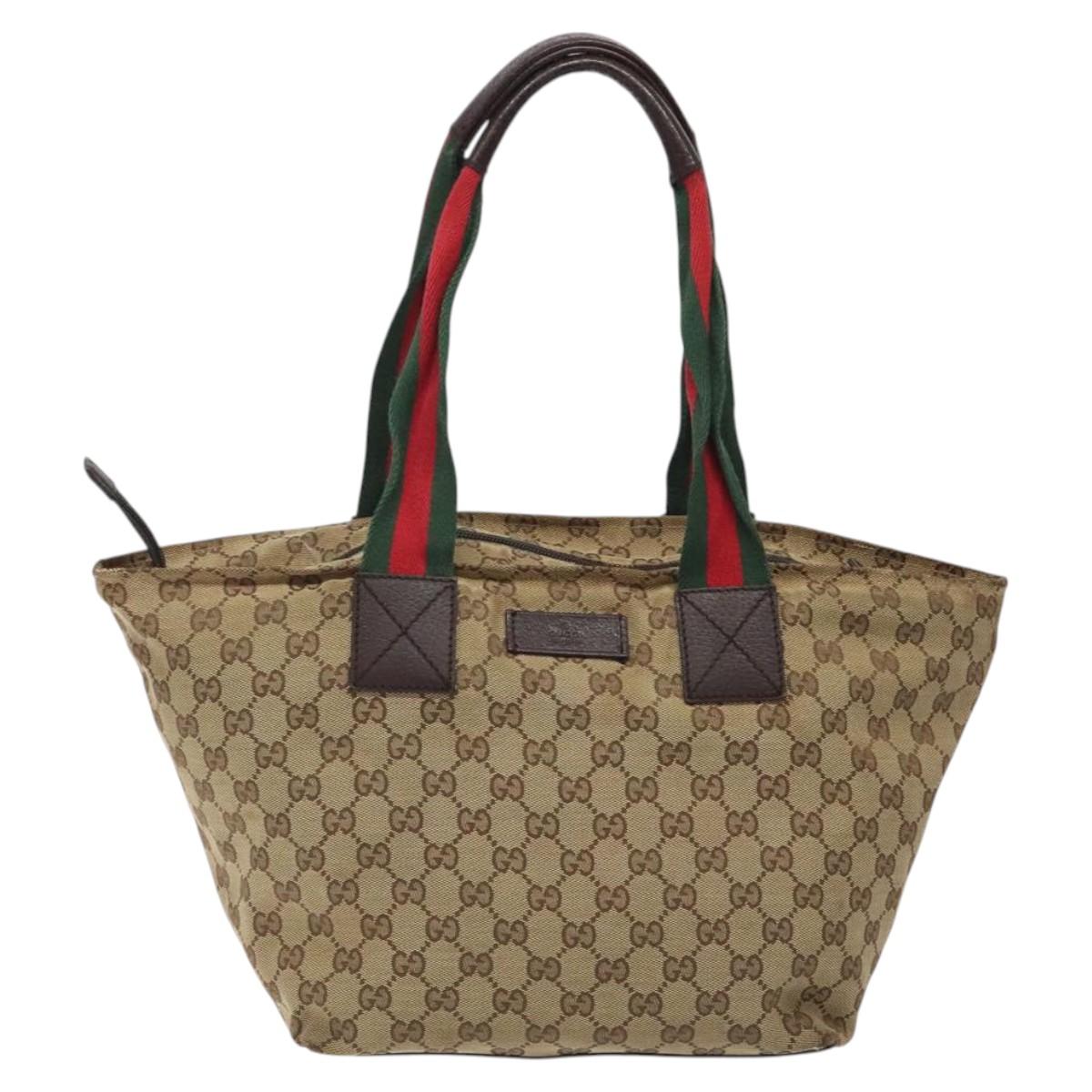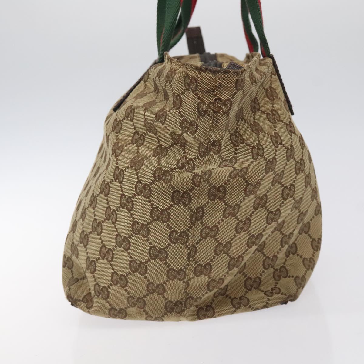 GUCCI GG Canvas Web Sherry Line Tote Bag Beige Green Red 131230 Auth hk2585