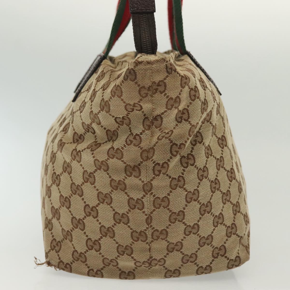 GUCCI GG Canvas Web Sherry Line Tote Bag Beige Green Red 131230 Auth ki5944