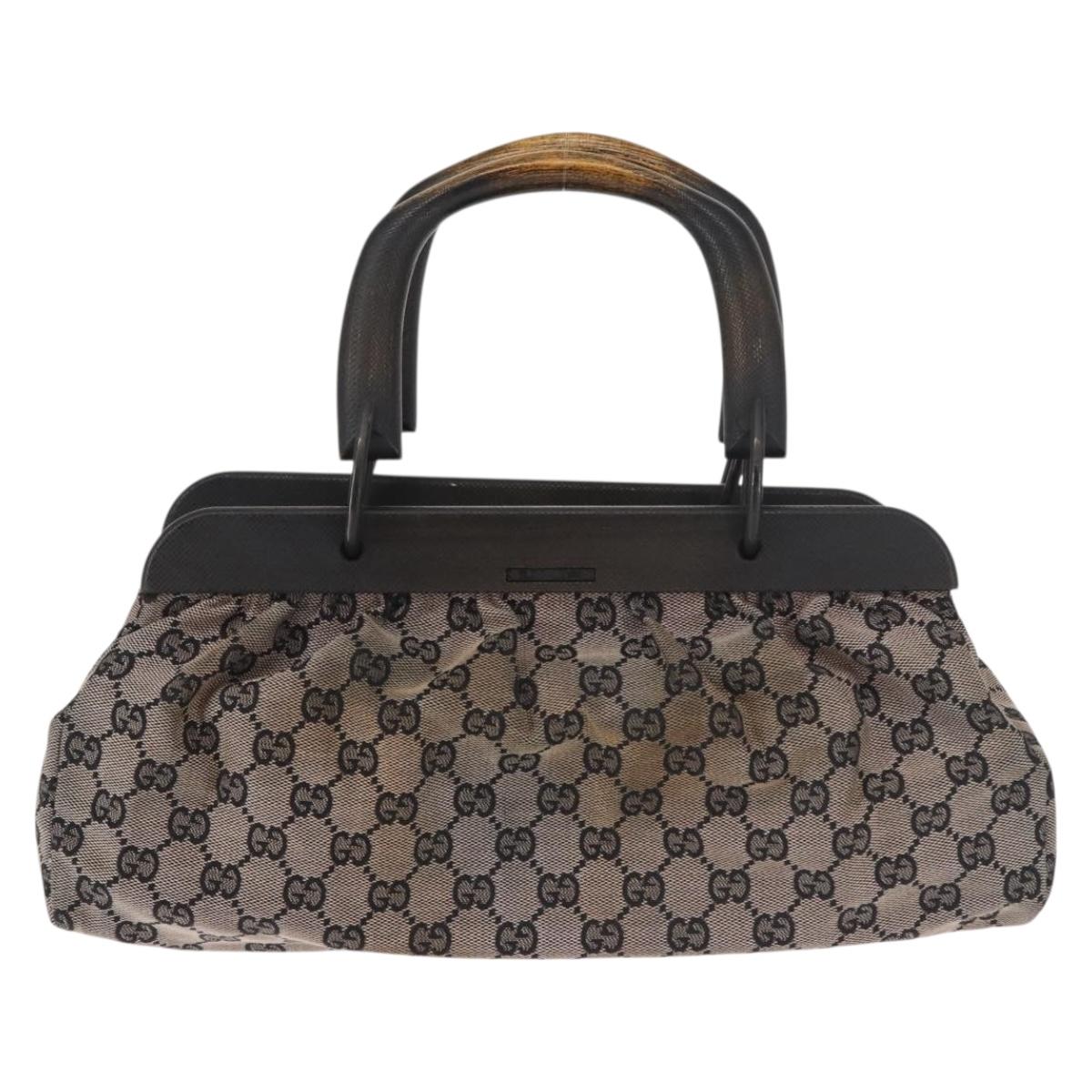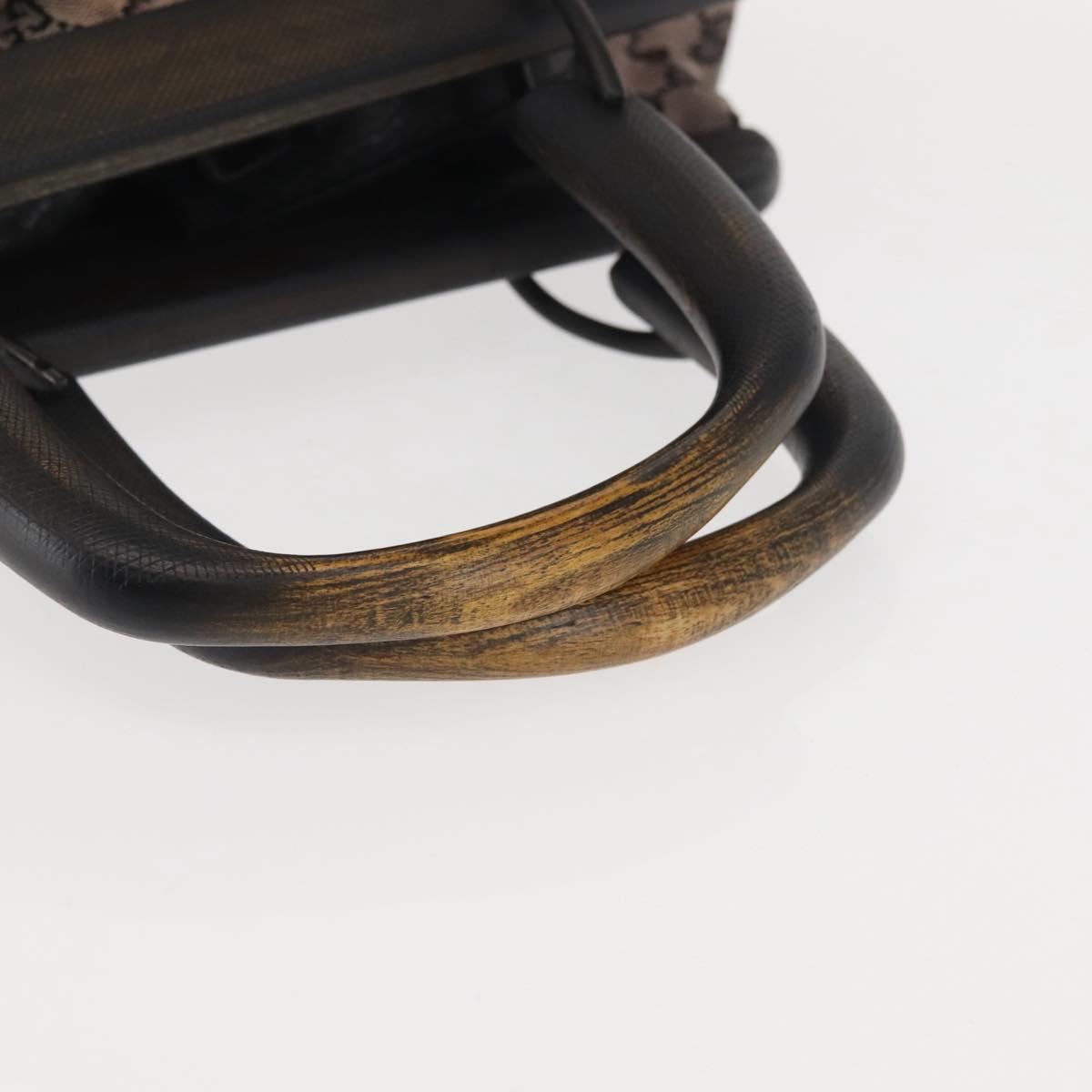 GUCCI GG Canvas Wood Handle Hand Bag Gray 112683 Auth 144272