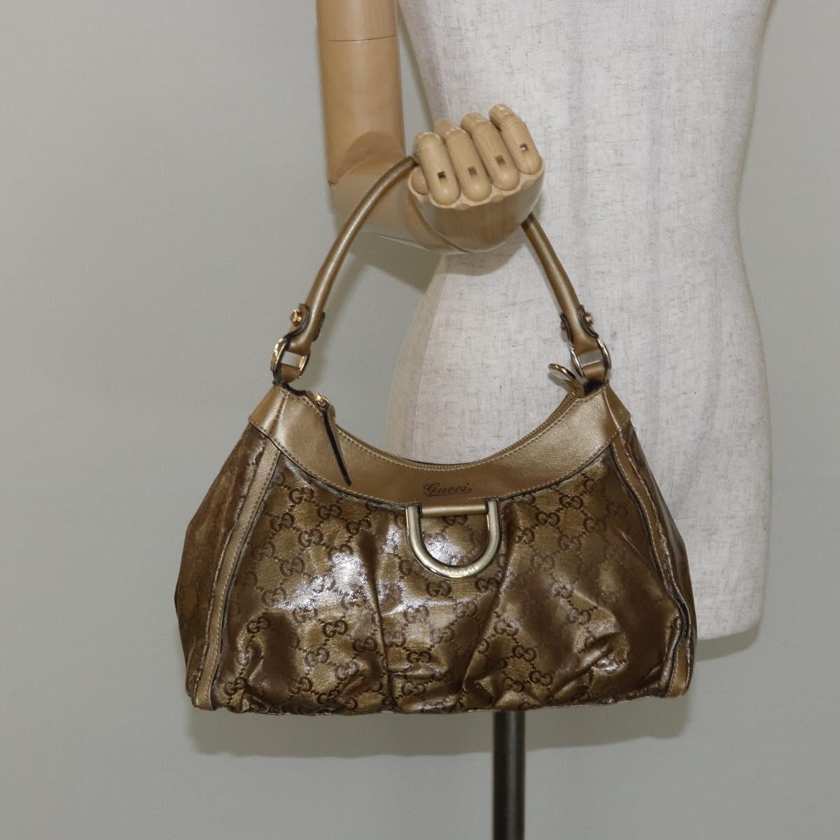 GUCCI GG Crystal Abbey Bag Coated Canvas Bronze Gold 190525 Auth bs29488