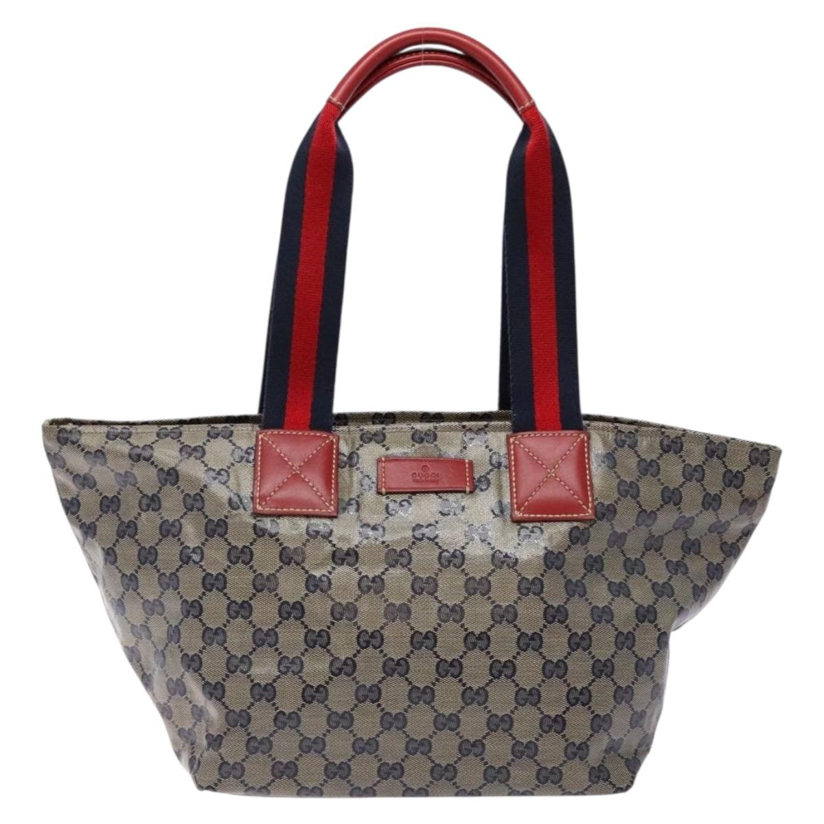 GUCCI GG Crystal Sherry Line Tote Bag Coated Canvas Red Navy 131230 Auth 135630