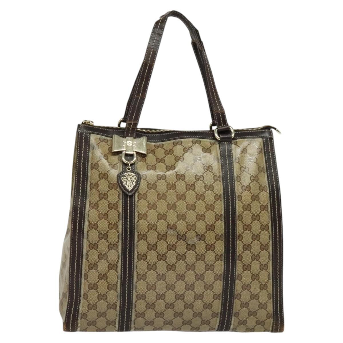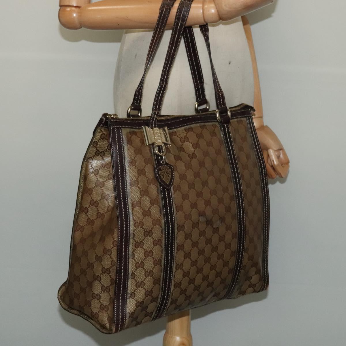 GUCCI GG Crystal Tote Bag Coated Canvas Beige Gold 181491 Auth bs25998