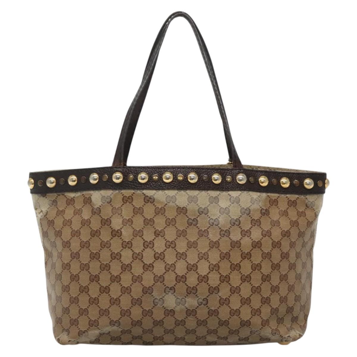 GUCCI GG Crystal Tote Bag Coated Canvas Beige Gold 207291 Auth 139548