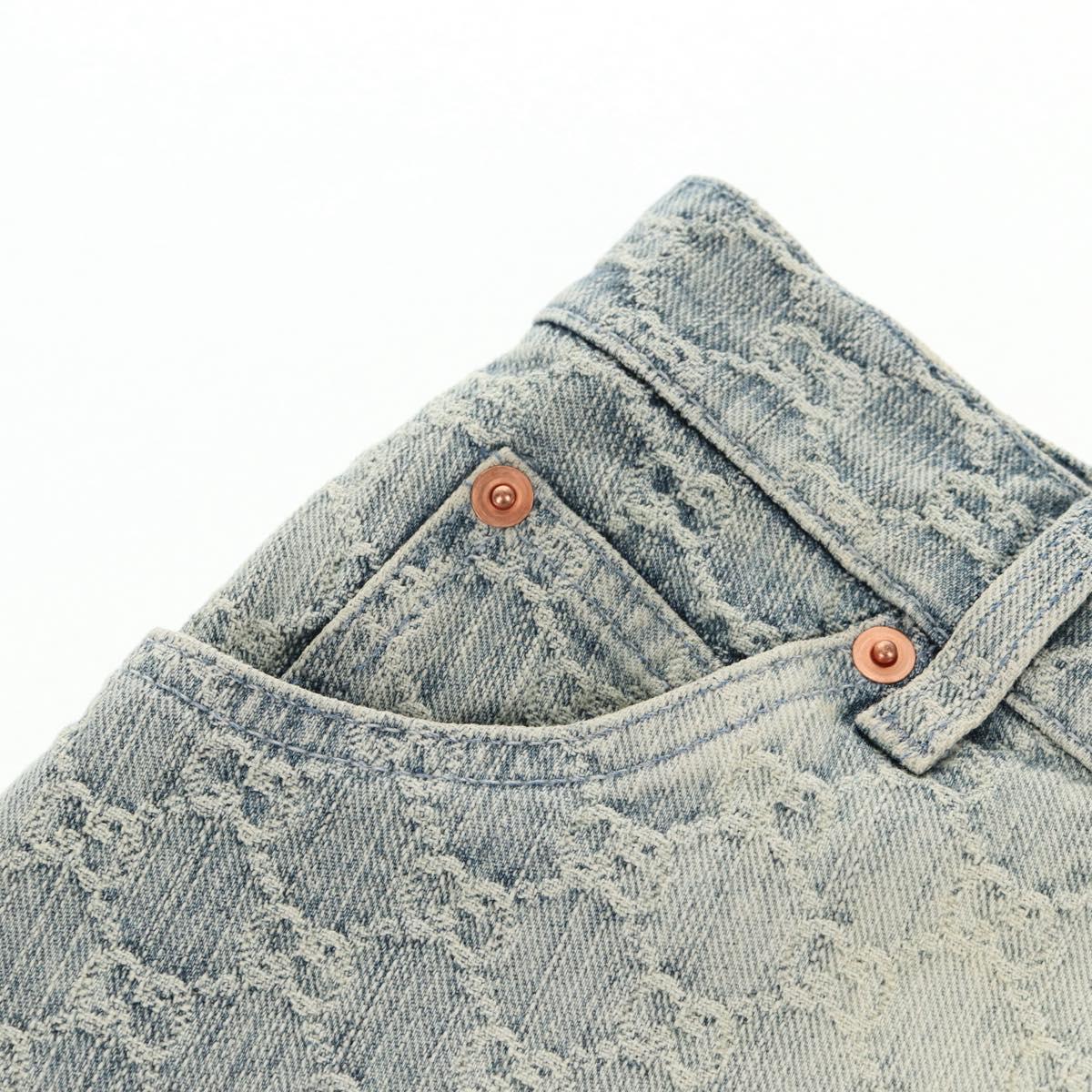 GUCCI GG Jacquard Skirt Denim Light Blue 678789 Auth 144315