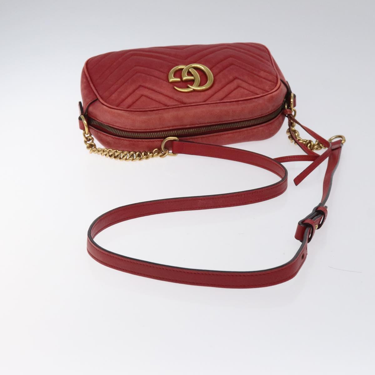 GUCCI GG Marmont Chain Shoulder Bag Leather Red Gold 447632 Auth ep9033