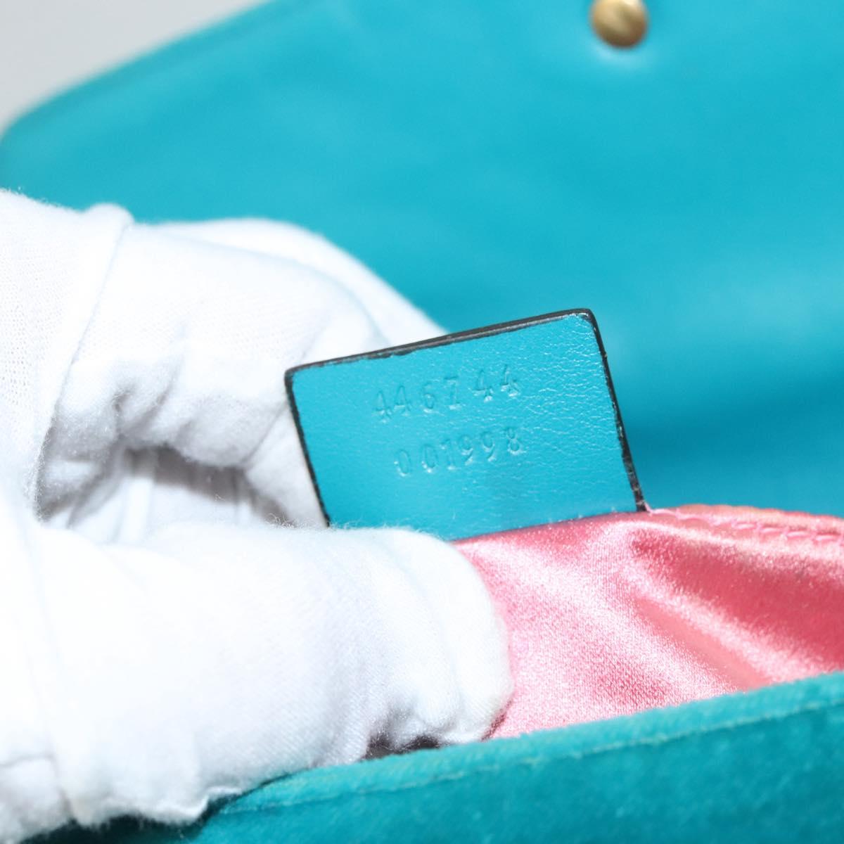 GUCCI GG Marmont Chain Shoulder Bag Velor Turquoise Blue Gold 446744 Auth mr1269