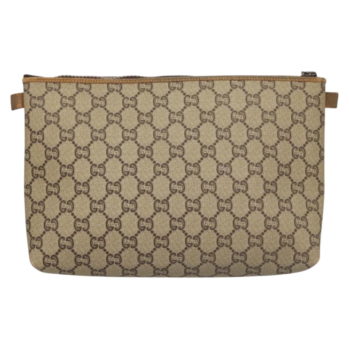 GUCCI GG Plus Supreme Clutch Bag PVC Leather Beige Gold Auth bs24854