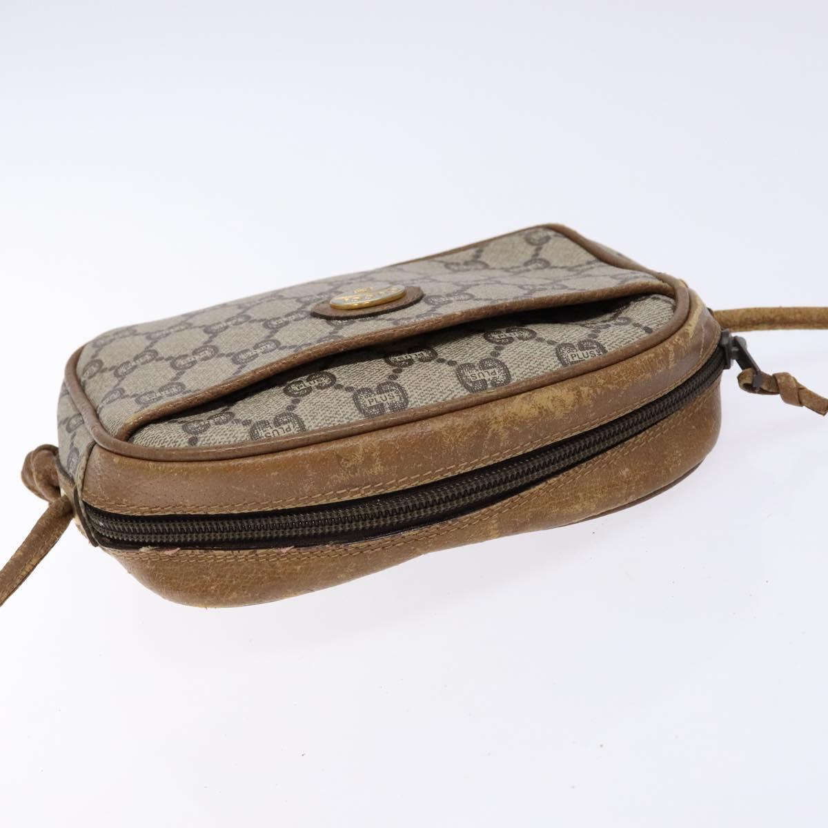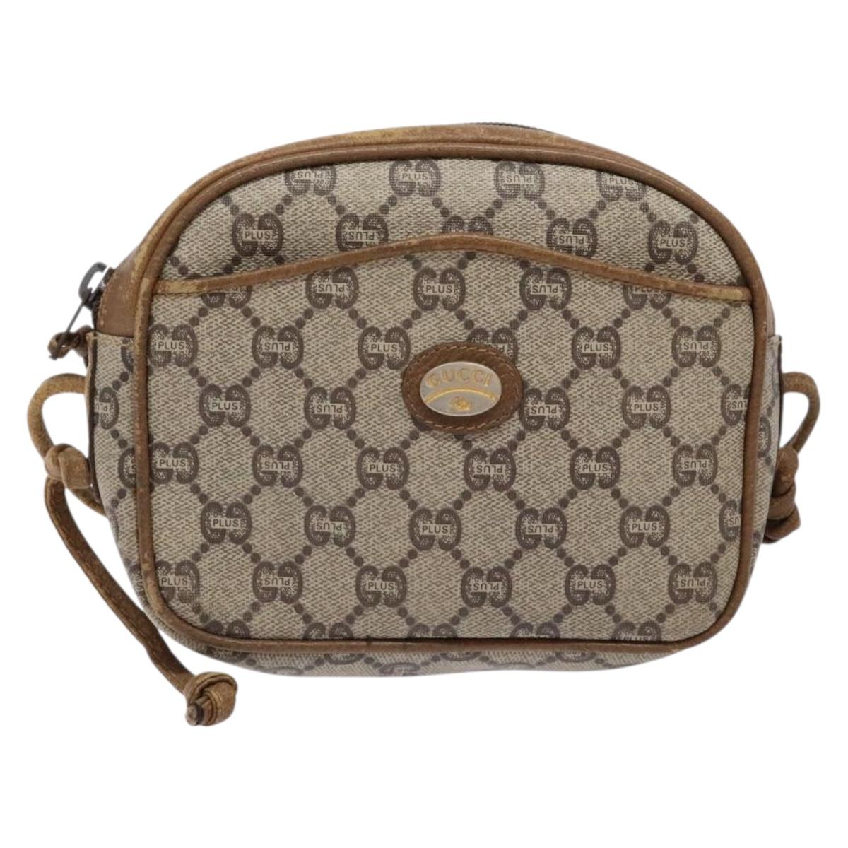 GUCCI GG Plus Supreme Shoulder Bag PVC Beige Auth sw1228