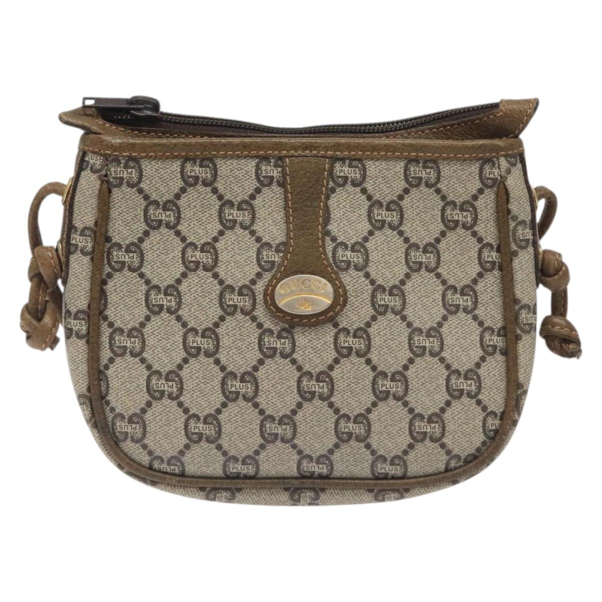 GUCCI GG Plus Supreme Shoulder Bag PVC Beige Auth th6188
