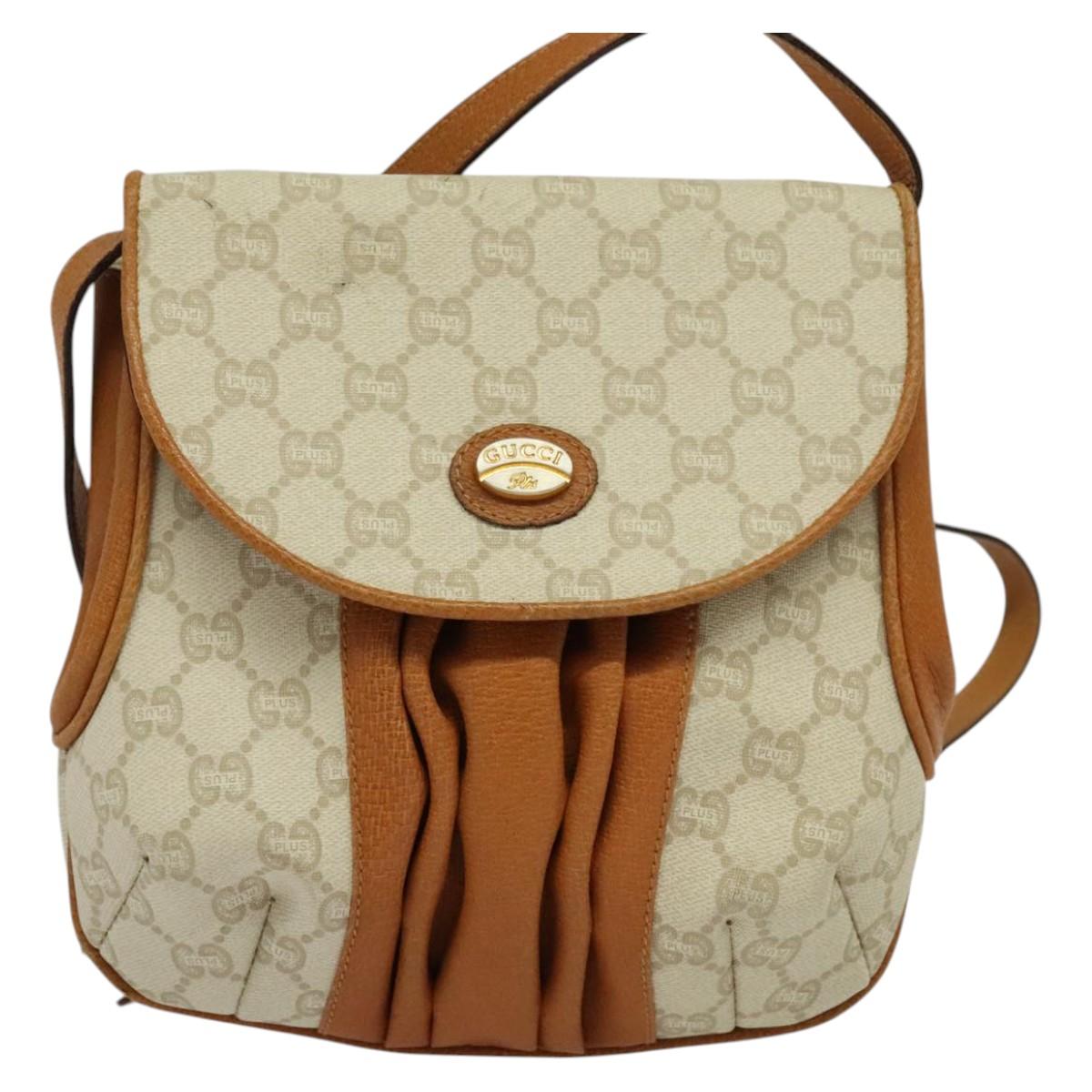 GUCCI GG Plus Supreme Shoulder Bag PVC Beige Gold Auth 139096