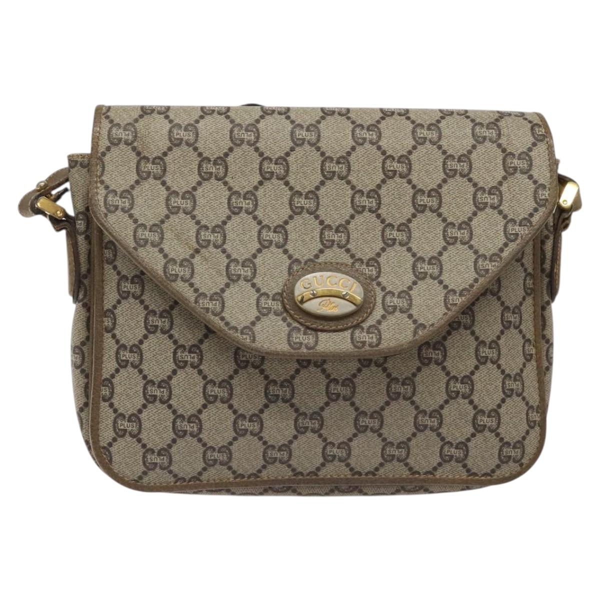 GUCCI GG Plus Supreme Shoulder Bag PVC Beige Gold Auth th5987