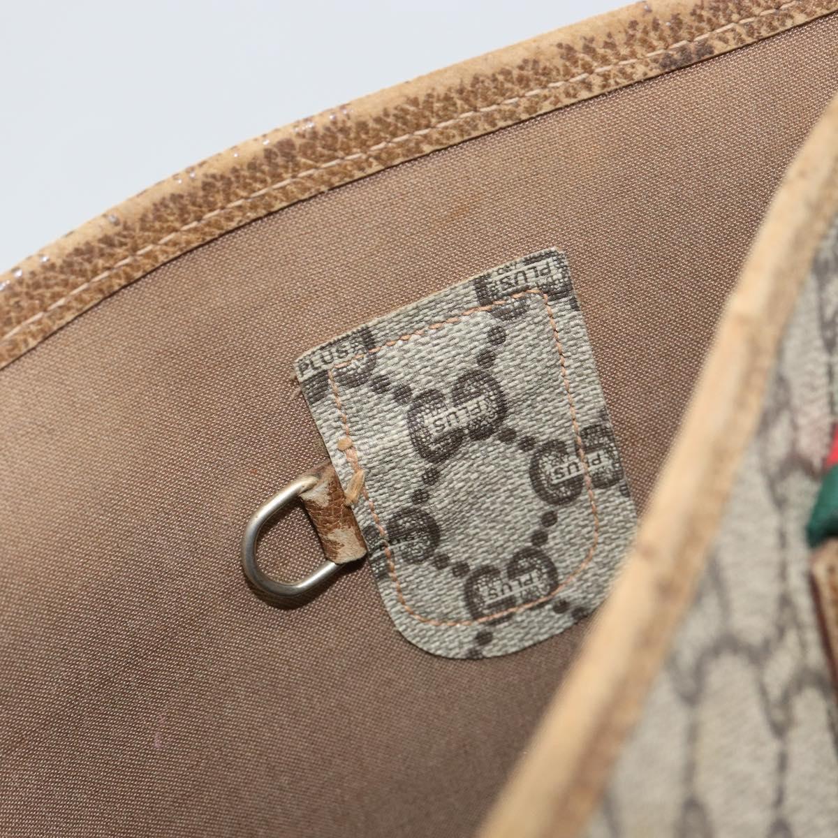 GUCCI GG Plus Supreme Web Sherry Line Tote Bag PVC Beige Gold Auth 146421