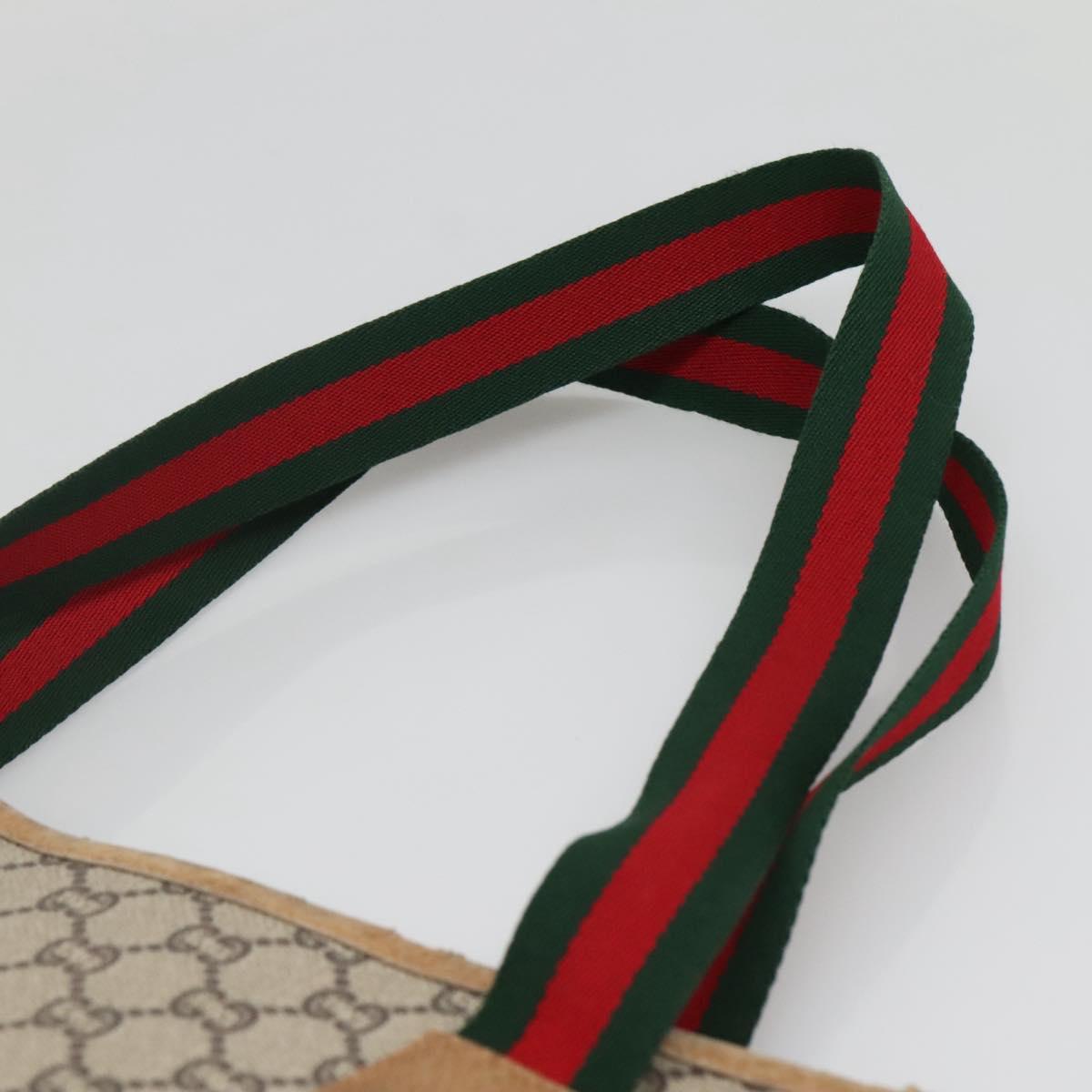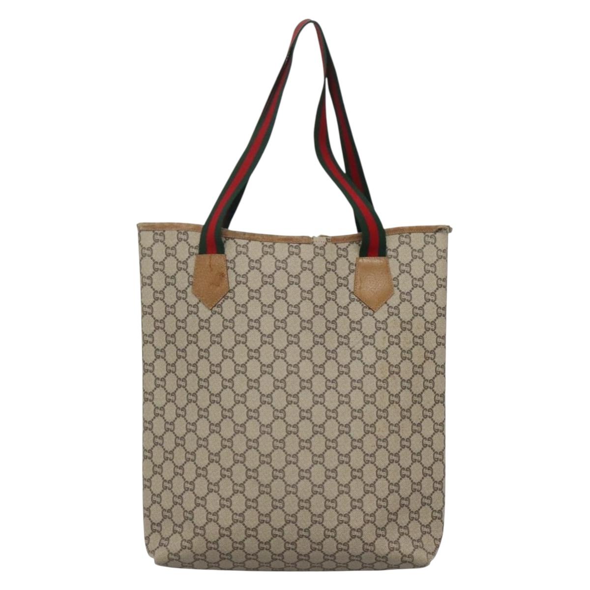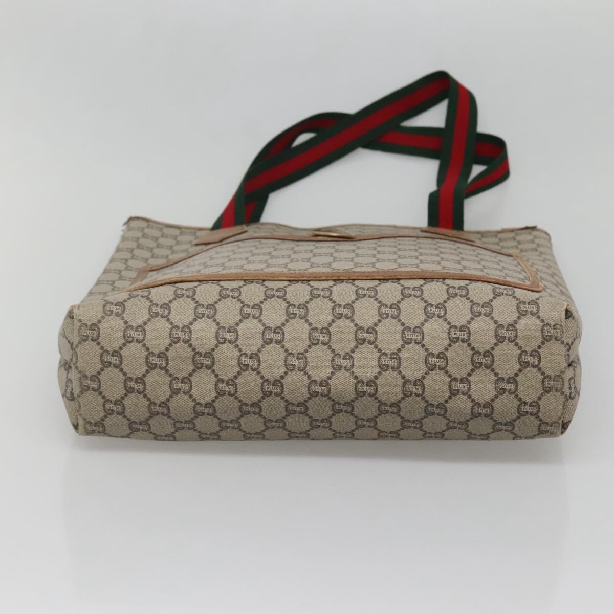 GUCCI GG Plus Supreme Web Sherry Line Tote Bag PVC Beige Gold Auth BA5355