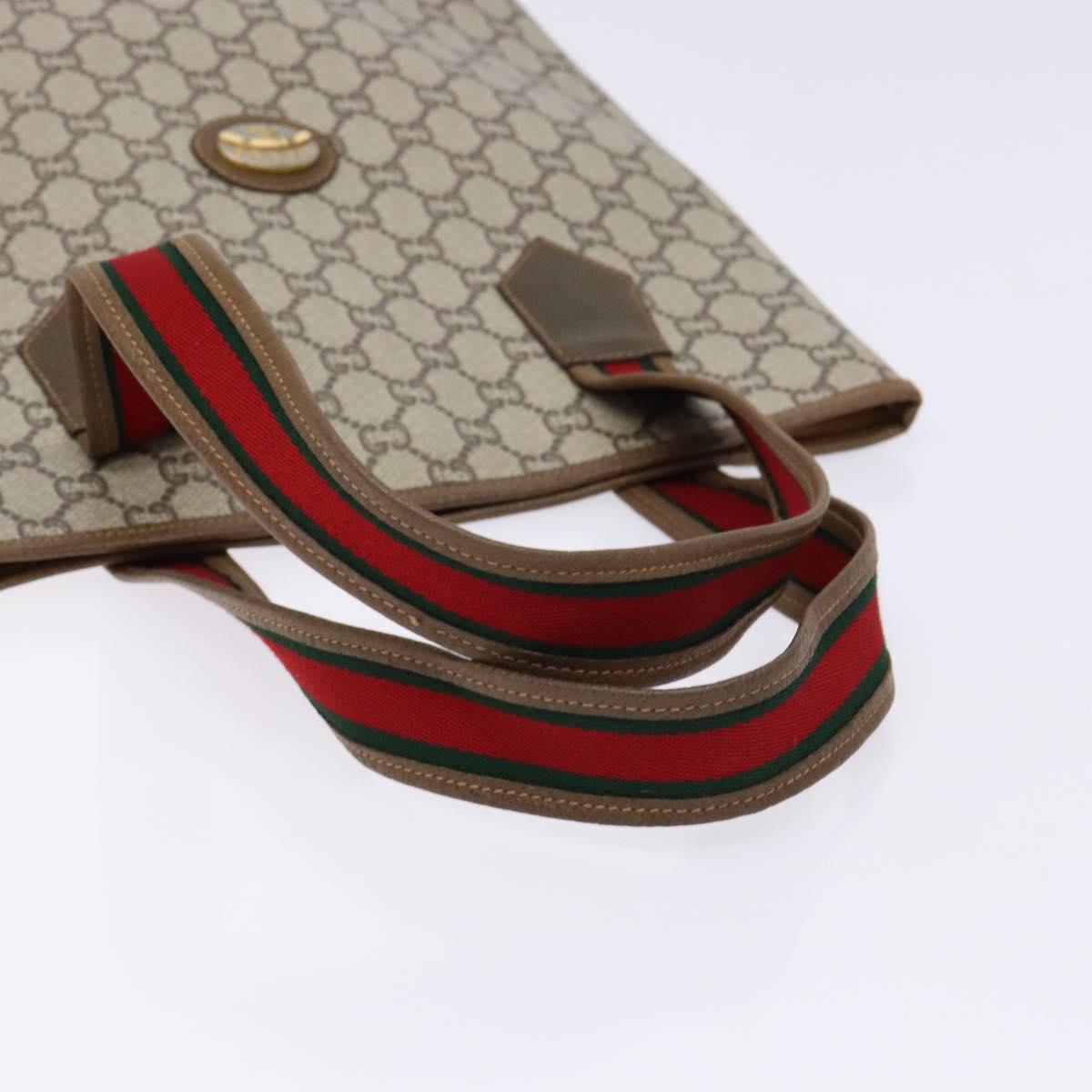 GUCCI GG Plus Supreme Web Sherry Line Tote Bag PVC Beige Red Green Auth BA5310