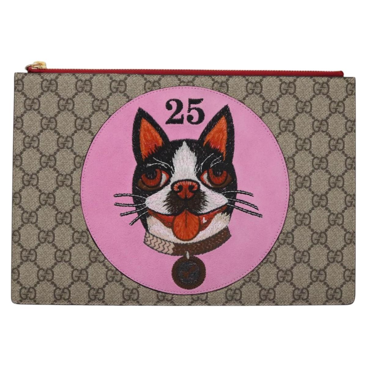 GUCCI GG Supreme BODCO Clutch Bag PVC Beige Gold 506280 Auth ac3672AV