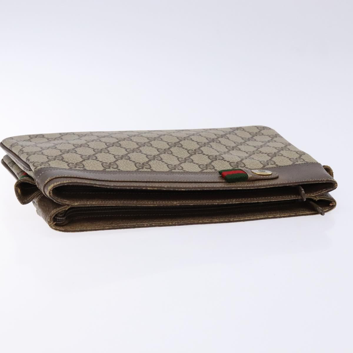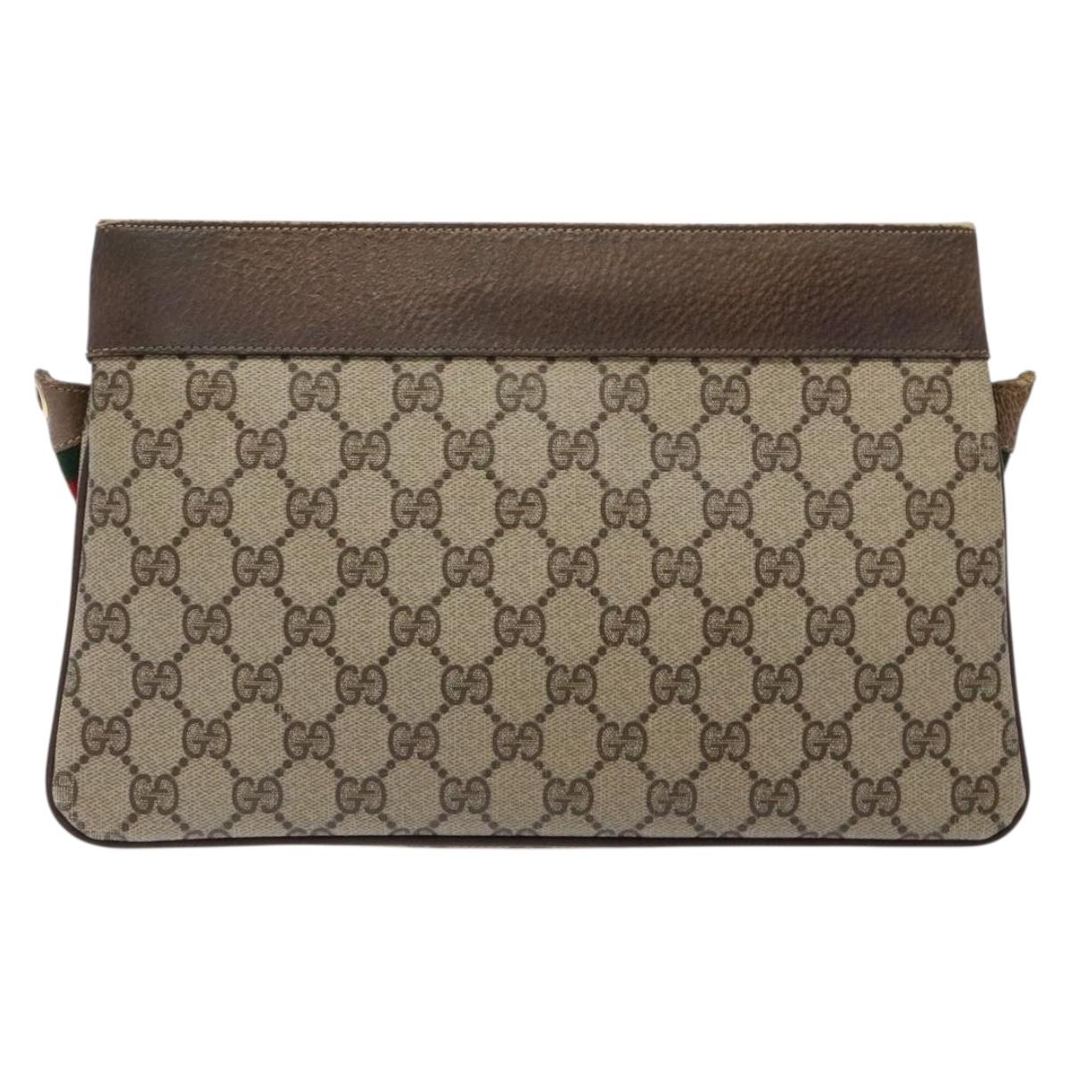 GUCCI GG Supreme Chain Clutch Bag PVC Beige Gold Auth bs28268