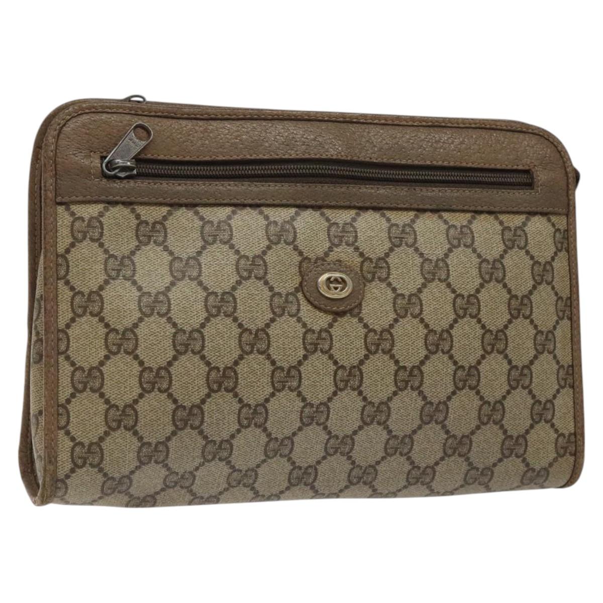 GUCCI GG Supreme Clutch Bag PVC Beige Gold 97 01 037 Auth SW828