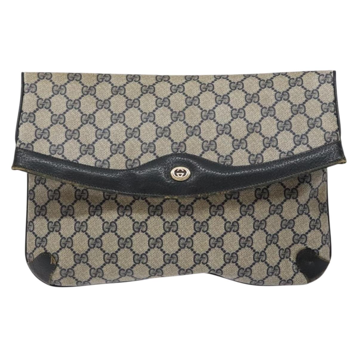 GUCCI GG Supreme Clutch Bag PVC Navy Gold 156 02 075 Auth sw1174