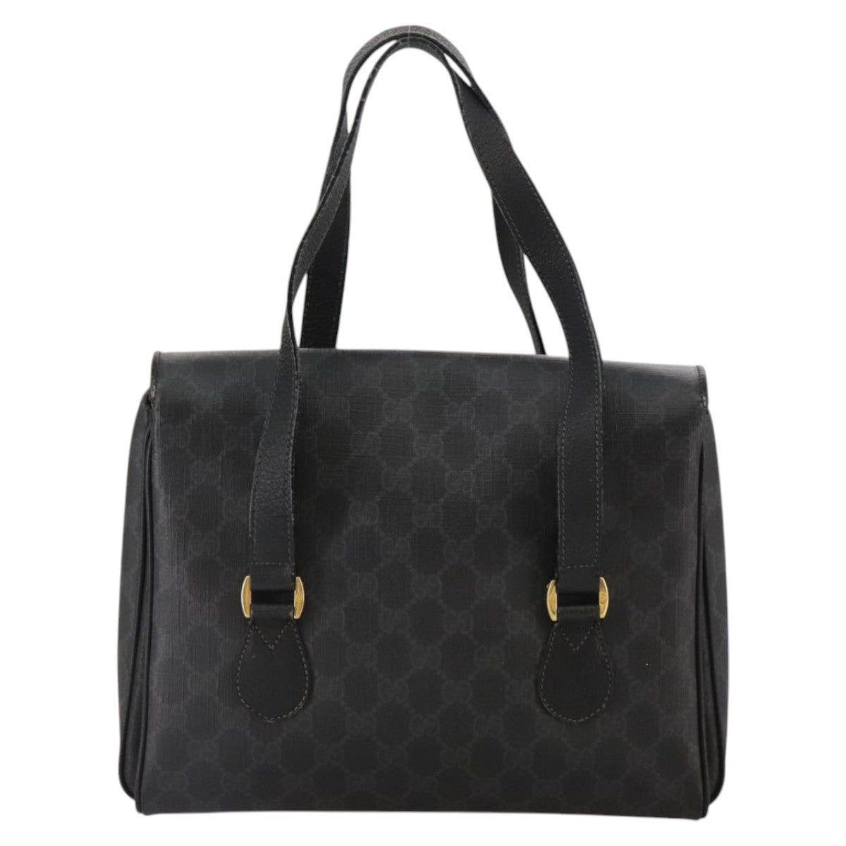 GUCCI GG Supreme Hand Bag PVC Leather Black Gold 116 02 080 Auth 111672